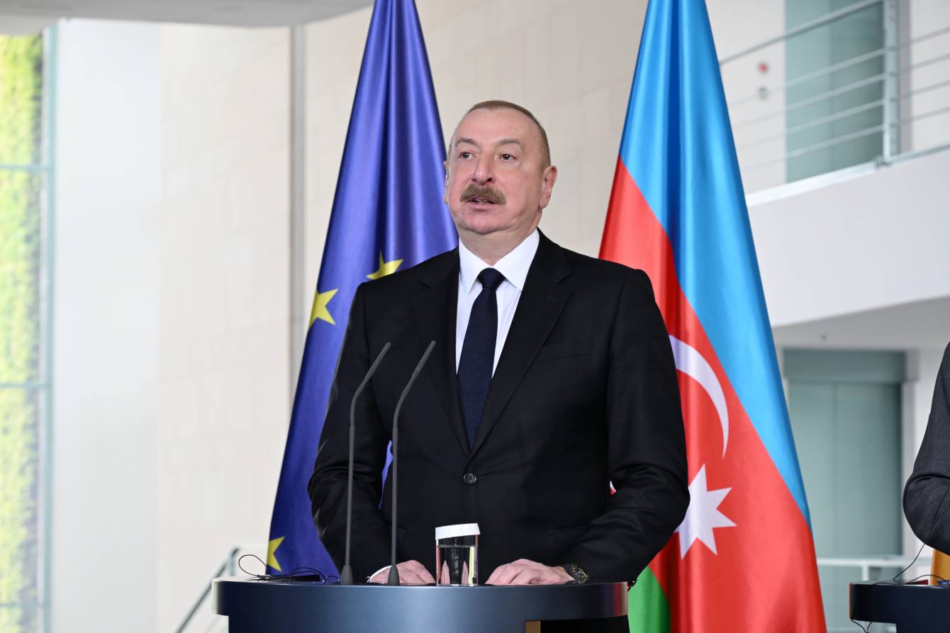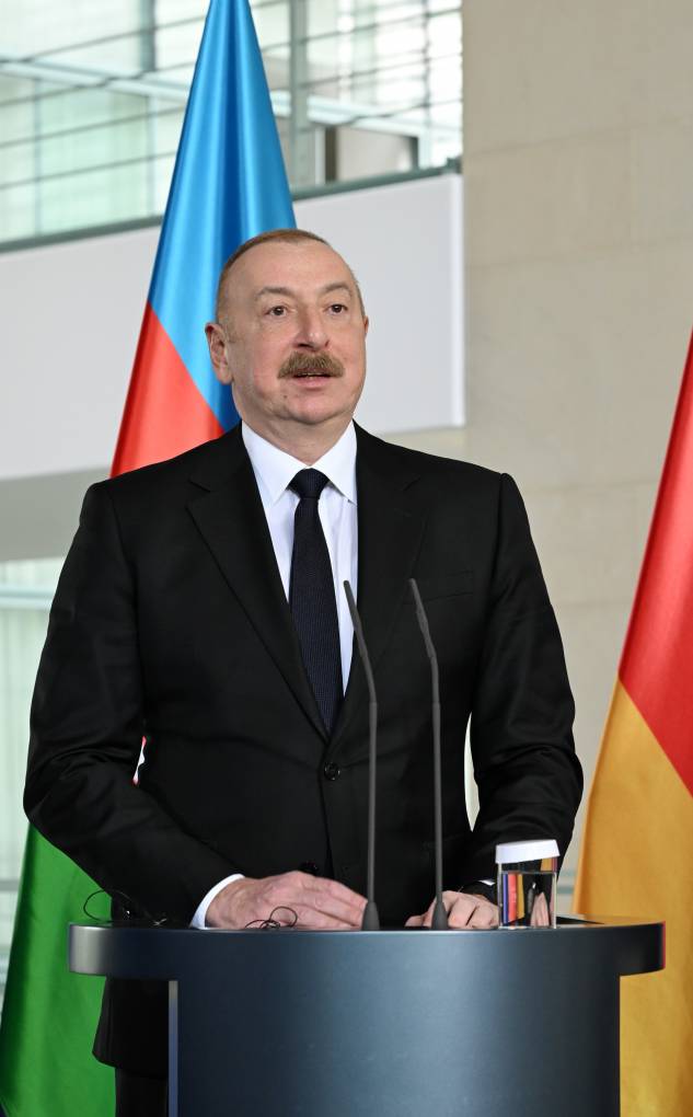 Прежде всего, я хотел бы выразить Вам благодарность за приглашение. Как Вы упомянули, в последнее время мои визиты в Германию носят регулярный характер. Могу сказать, что в последнее время германо-азербайджанские отношения переживают период стремительного развития. Я был здесь в марте прошлого года, а два месяца назад мы встречались с господином Канцлером в Мюнхене. Наша двусторонняя повестка дня достаточно обширна. Развитие германо-азербайджанских отношений имеет большое значение как для наших стран, так и для развития и стабильности Южного Кавказа в целом.