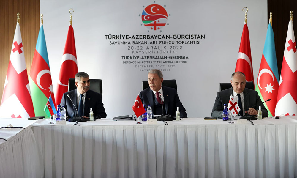 21 декабря в Турции состоялась встреча в трехстороннем формате между министром обороны Азербайджанской Республики генерал-полковником Закиром Гасановым, министром национальной обороны Турецкой Республики господином Хулуси Акаром и министром обороны Грузии господином Джуаншером Бурчуладзе, сообщили «Новой Эопхе» в Министерстве обороны Азербайджана.