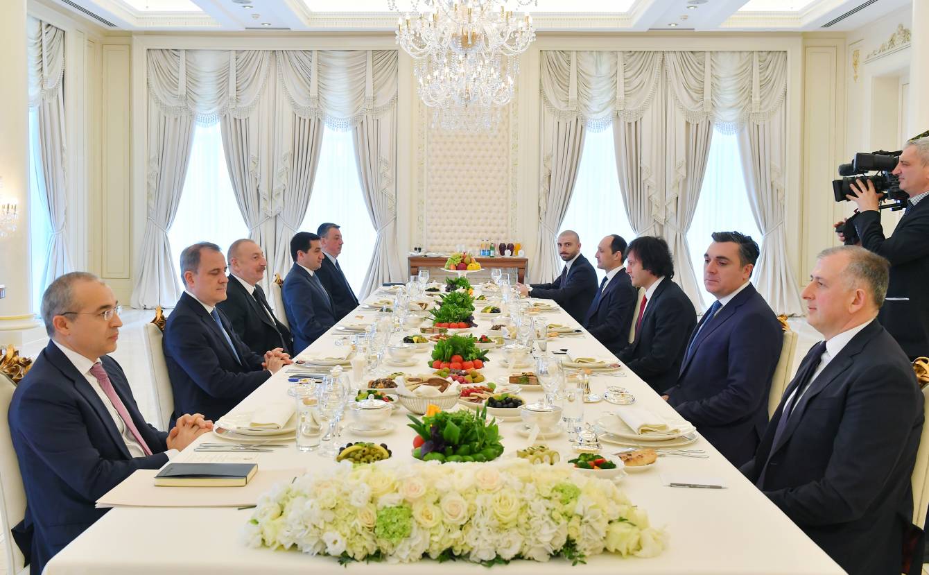 16 марта в ходе обеда состоялась встреча Президента Азербайджанской Республики Ильхама Алиева с Премьер-министром Грузии Ираклием Кобахидзе в расширенном составе.