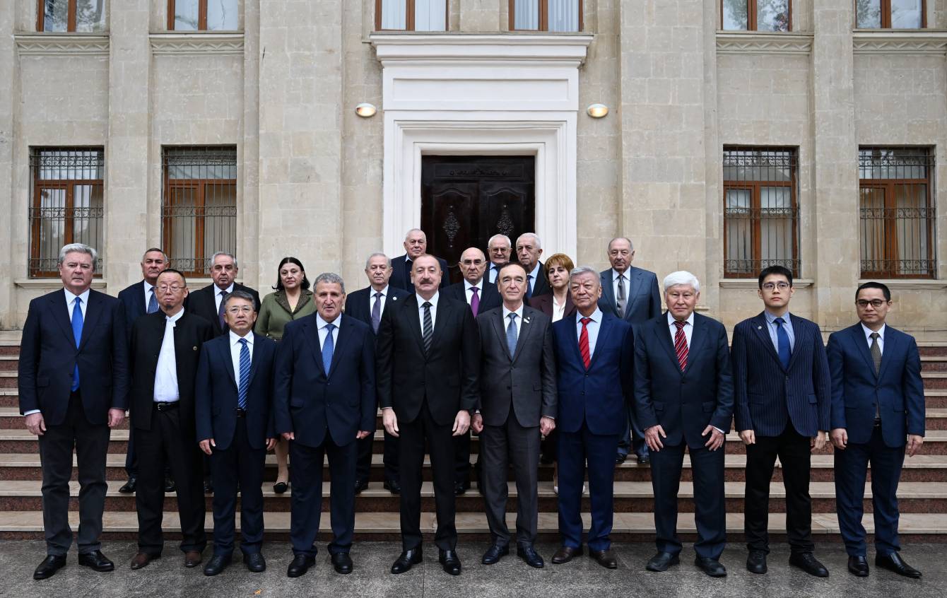 Сначала глава государства встретился с членами Президиума Национальной Академии наук Азербайджана и зарубежными гостями, участвовавшими в юбилейном собрании по случаю 80-летия Академии.