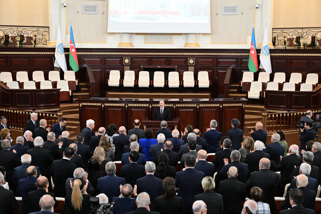 Десять лет назад на 70-летии Академии я выступил перед учеными в этом самом зале и на протяжении этих десяти лет, наряду с решением всех других задач, стоящих перед страной, старался оказывать свою поддержку и развитию науки. Сегодня я хочу поделиться с вами некоторыми мыслями, поскольку за последние десять лет как в мире, так и в Азербайджане произошли коренные изменения. Мировая экономика полностью изменилась, налицо происходящие в мире политические процессы, войны, военные столкновения, нарушение международного права, полное игнорирование действующих правил.