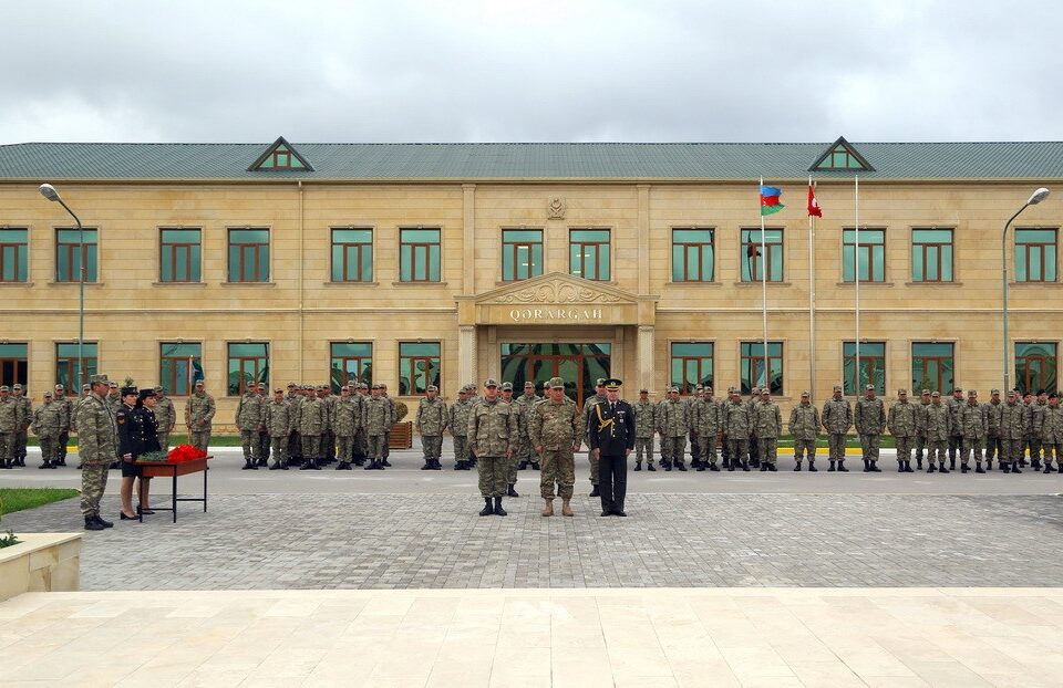 Сначала участники церемонии возложили цветы к бюсту общенационального лидера Гейдара Алиева, установленному на территории воинской части, минутой молчания почтили память Великого вождя и шехидов, павших в борьбе за независимость и территориальную целостность нашей Отчизны.
