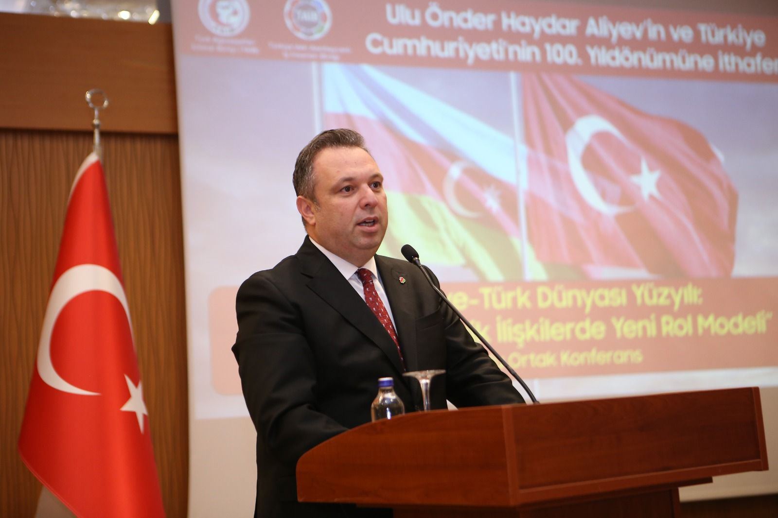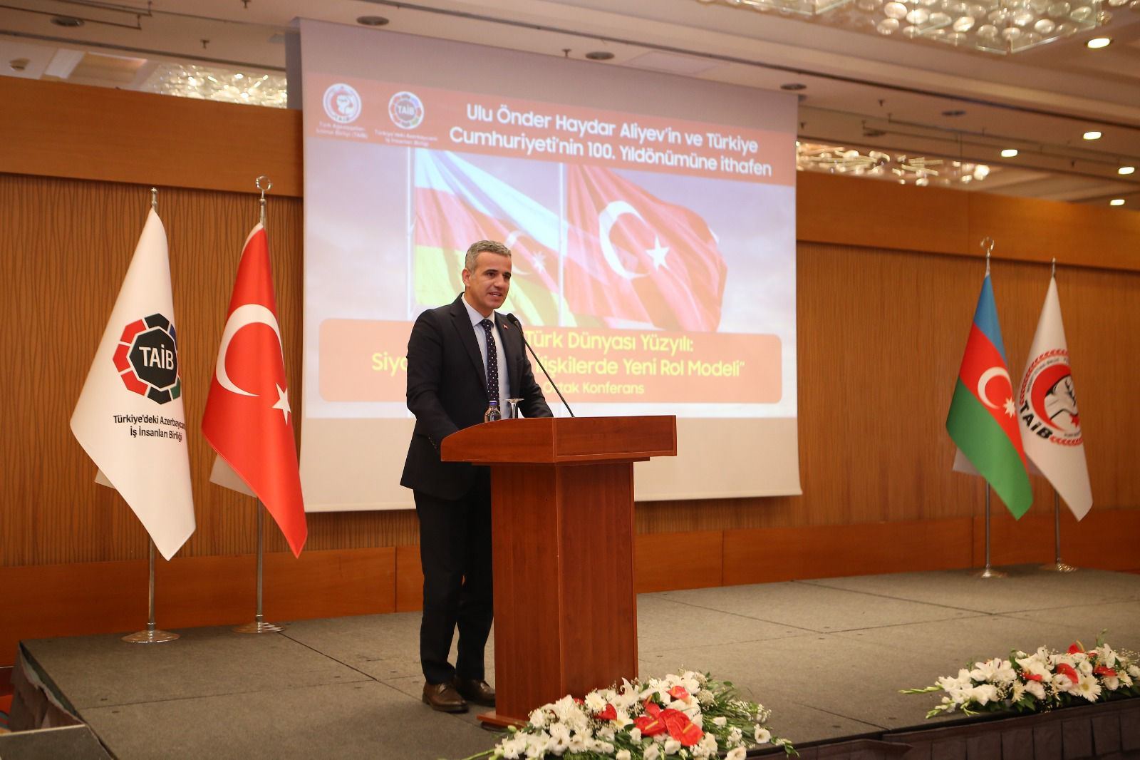 В Анкаре состоялась конференция по случаю 100-летию великого лидера азербайджанского народа Гейдара Алиева и 100-летия образования Турецкой Республики, организованная Союзом тюркских старейшин (TAİB) и Объединением деловых людей Азербайджана в Турции.