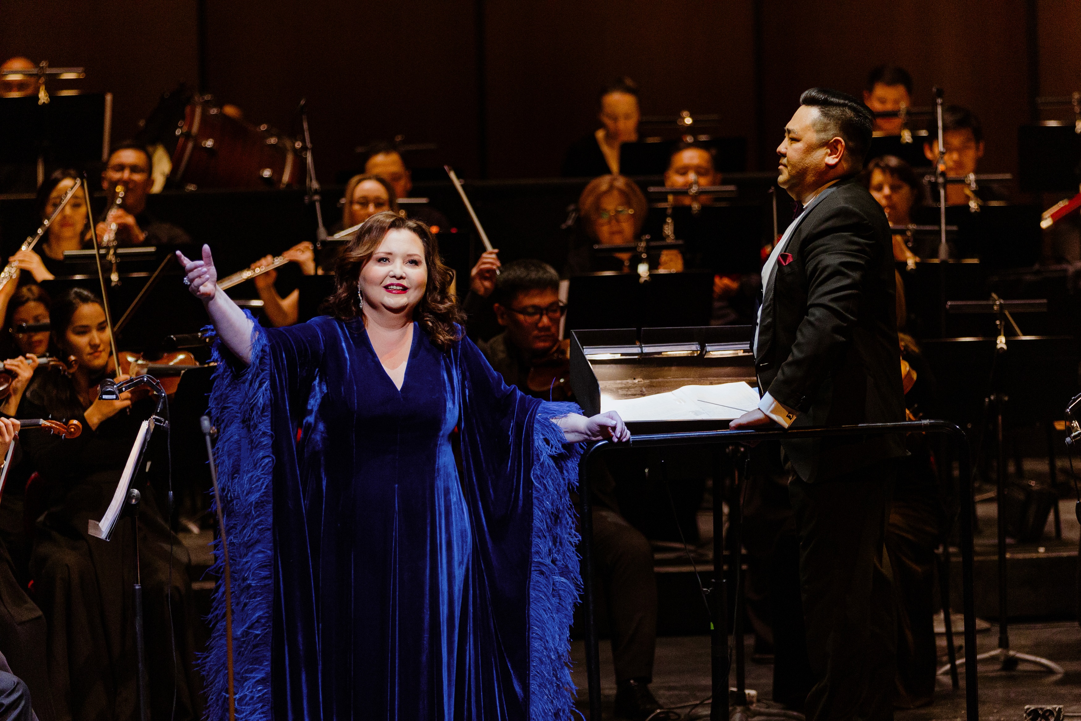 Вечер открыл знаменитый симфонический кюй «Құдаша-думан» Е.Рахмадиева. Программа была составлена блестяще, демонстрируя как мощь классического наследия, так и многогранность вокалистов. Певица, которую критики ведущих мировых изданий называют «феноменом», представила песню итальянского композитора Эрнесто де Куртиса Non ti scordar di me («Не забывай меня»).