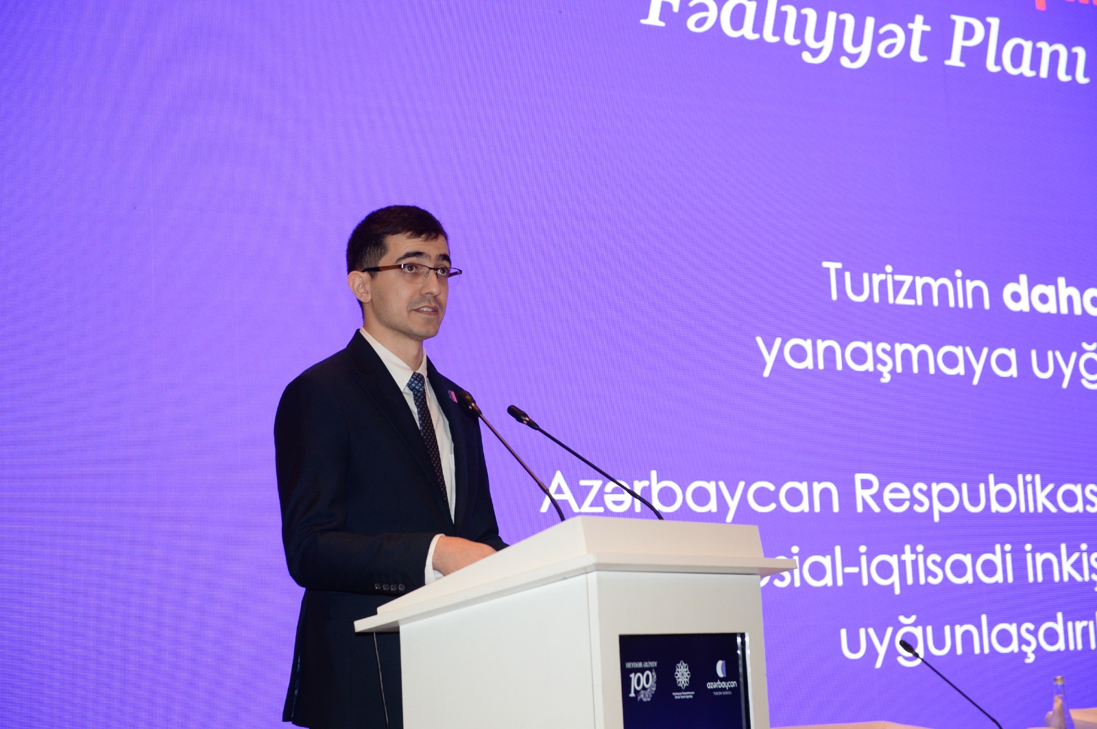 Далее представители Ассоциации туристической индустрии Азербайджана выступили с докладами на темы «Возможности развития туристической отрасли через отраслевую ассоциацию», «Перспективы развития индустрии гостеприимства Азербайджана», «Современное положение и развитие сферы туристической ориентации в Азербайджане».