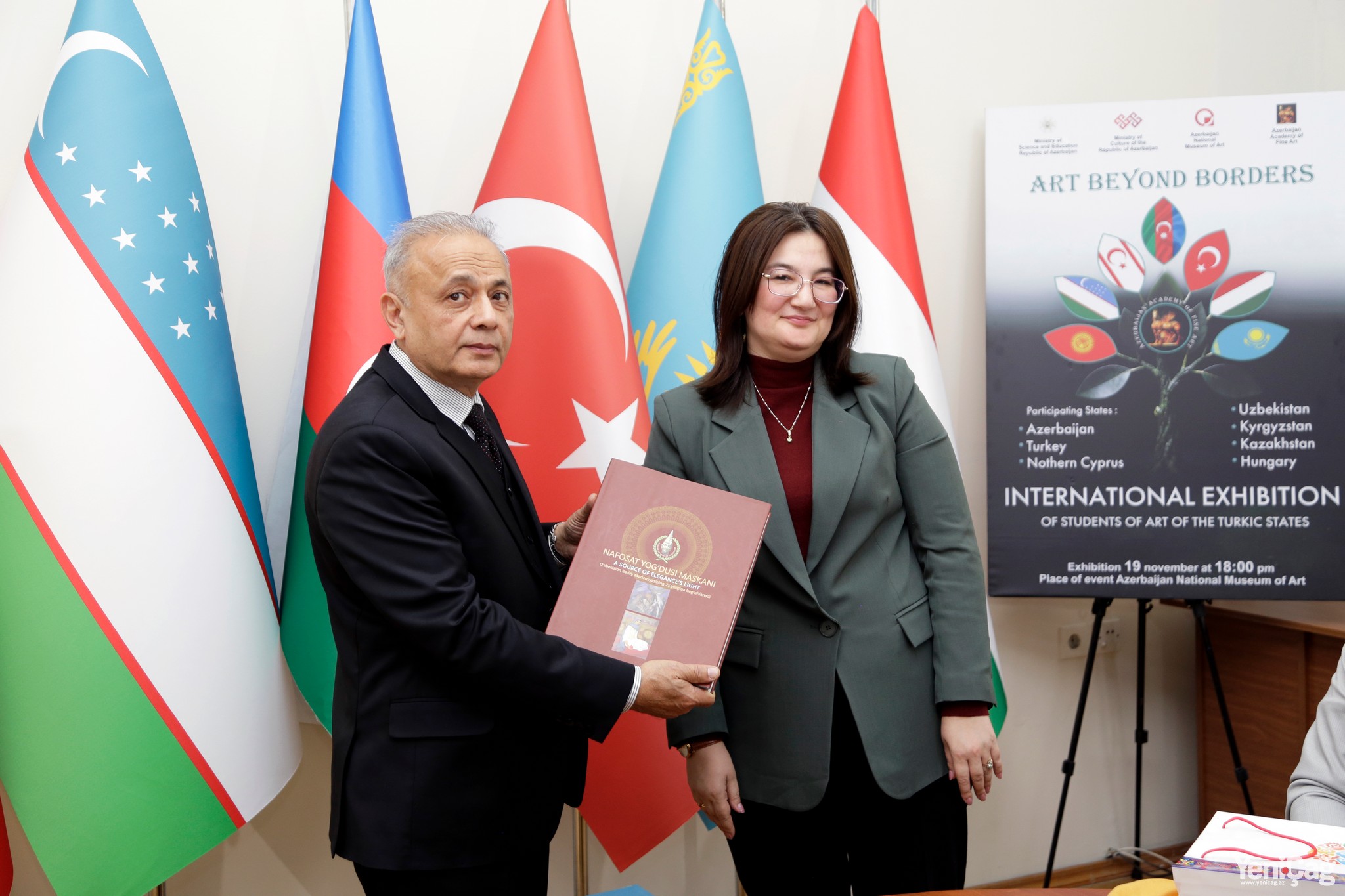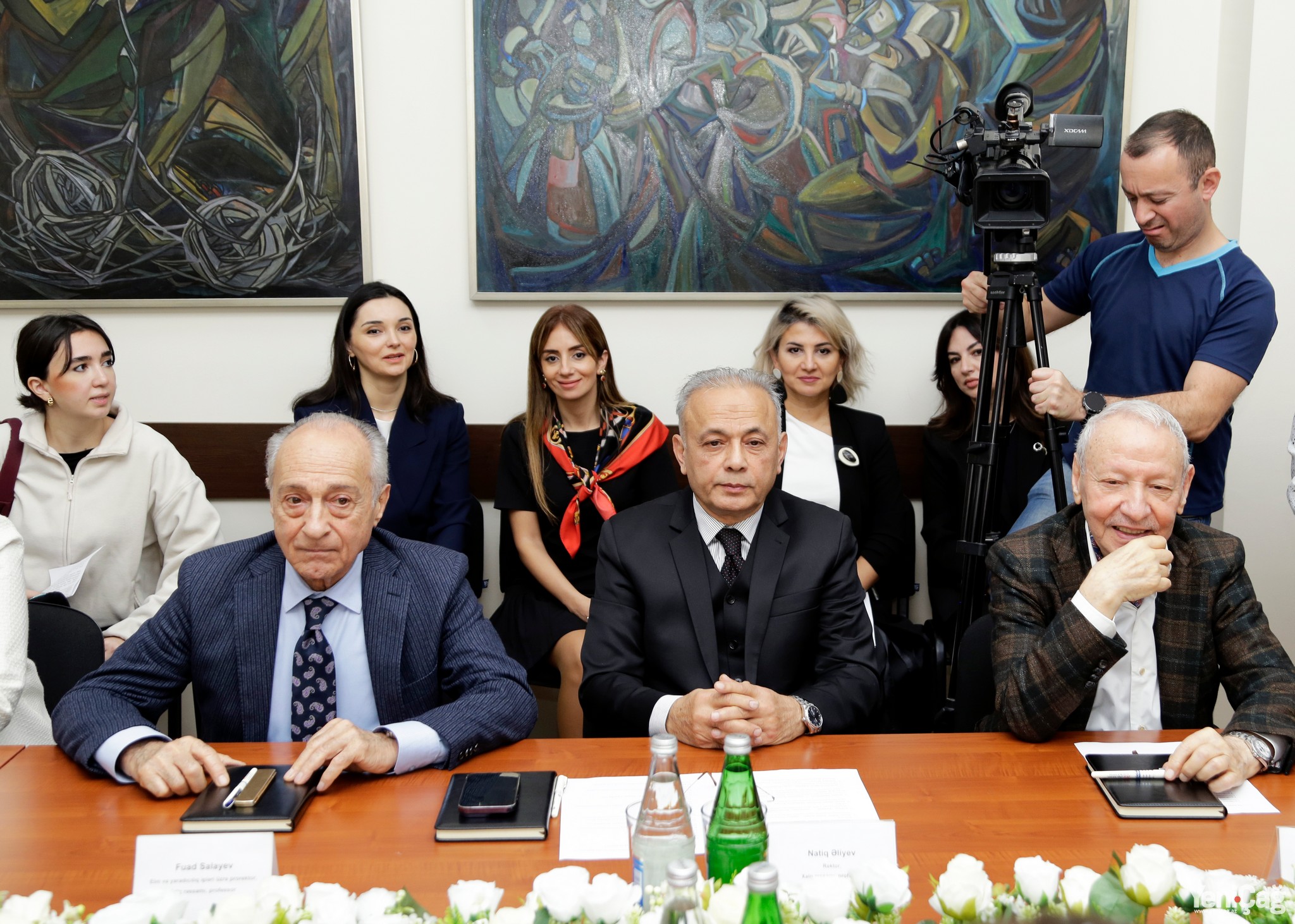 Ректор Азербайджанской академии художеств, народный художник, профессор Натиг Алиев открыл мероприятие и поприветствовал собравшихся гостей. Он подробно рассказал об истории создания Академии, традициях школы изобразительного искусства и системе образования, осуществляемой на трех языках. В своем выступлении ректор подчеркнул, что создание Академии указом Гейдара Алиева от 13 июня 2000 года стало важным этапом в развитии художественного образования в нашей стране. Он также отметил, что благодаря указу были созданы особые условия для творческой деятельности художников, а многим известным художникам государство предоставило мастерские.