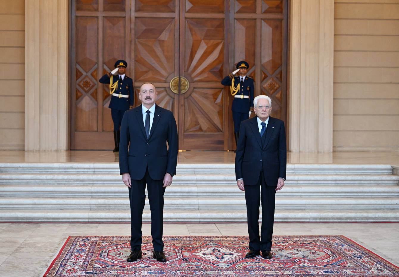 Президент Азербайджана Ильхам Алиев встретил Президента Италии Серджо Маттареллу.