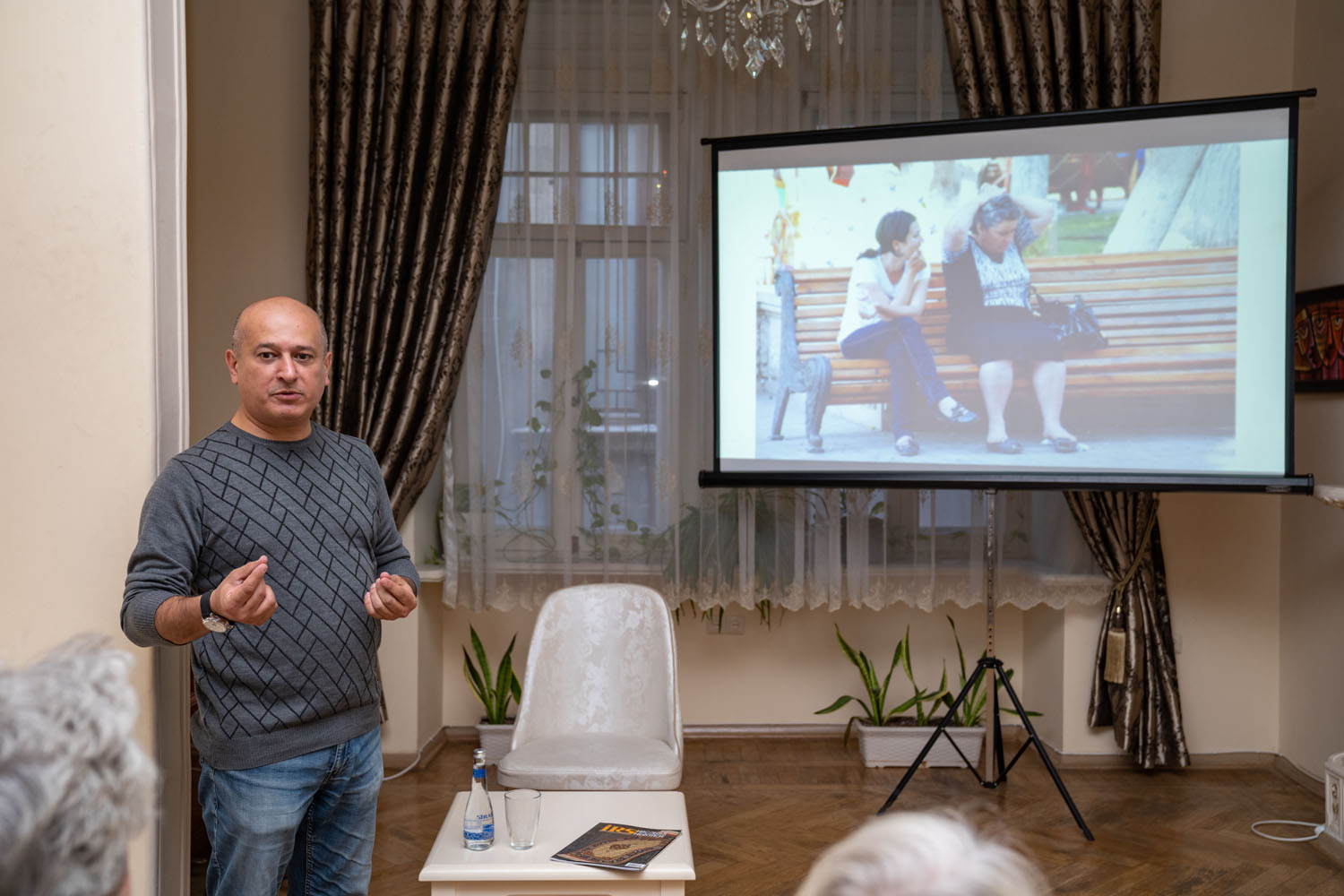 Презентация прошла в теплой, дружественной обстановке, друзья и коллеги Самира Алиева обсуждали его творческие успехи и интересные эпизоды из его жизни.