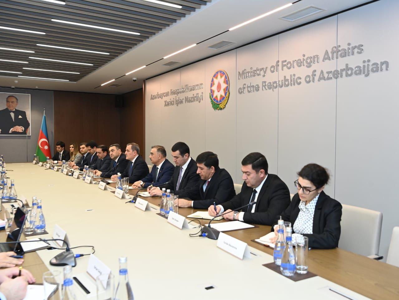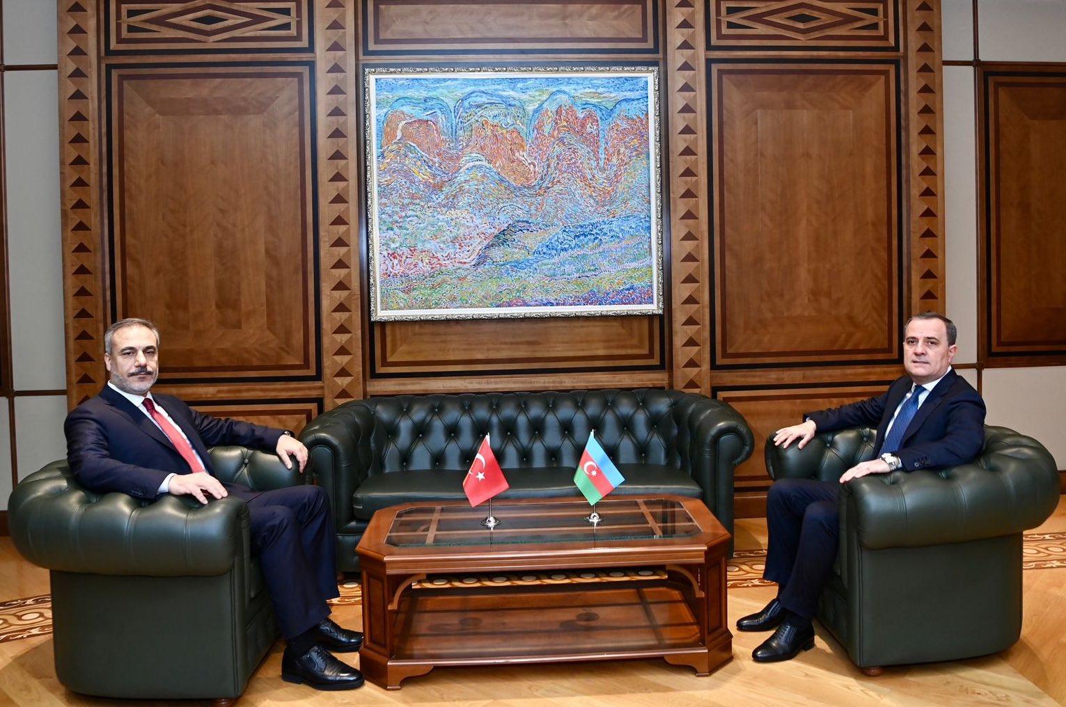 Сегодня в Баку министр иностранных дел Азербайджана Джейхун Байрамов встретился с делегацией Турецкой Республики во главе с министром иностранных дел Хаканом Фиданом.