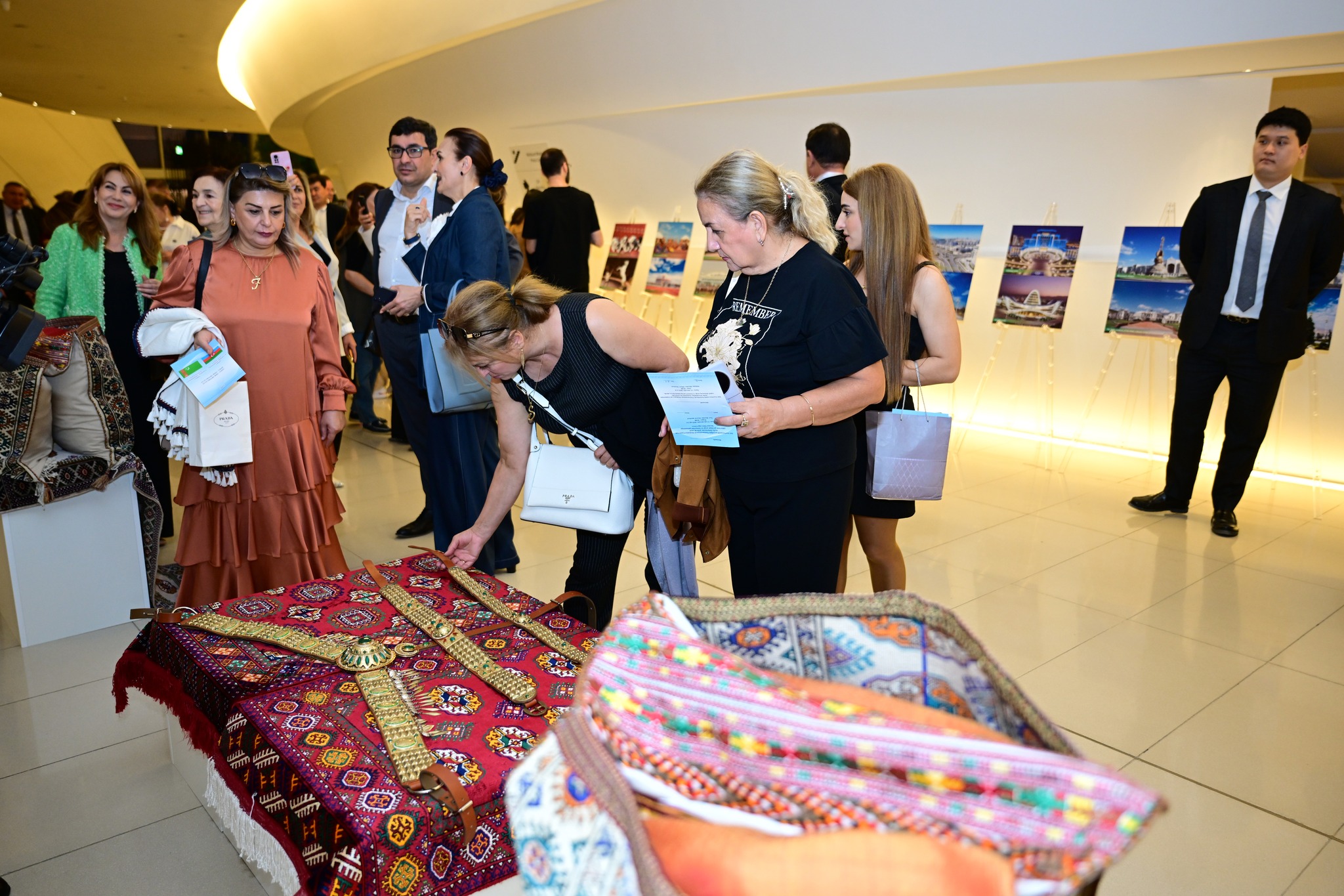 Затем гости ознакомились с фотовыставкой, отражающей богатое культурное наследие туркменского народа. Также были представлены национальные костюмы этой страны, произведения декоративно-прикладного искусства и музейные экспонаты, которые вызвали большой интерес у бакинской публики.
