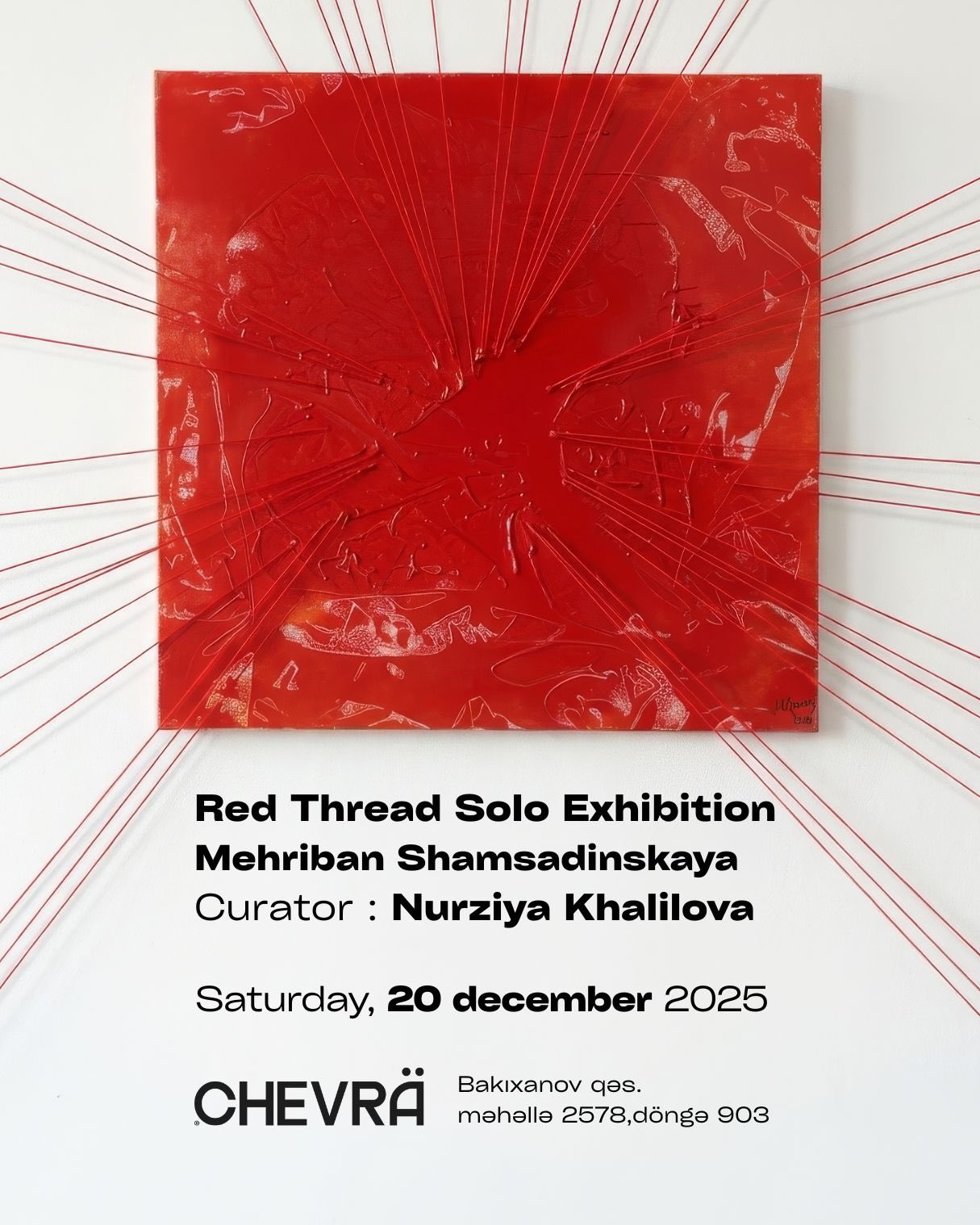 20 декабря в Баку в «Chevrä Community» состоялось открытие персональной выставки азербайджанской художницы Мехрибан Шамсадинской под названием «Красной нитью», сообщает «Новая Эпоха».
