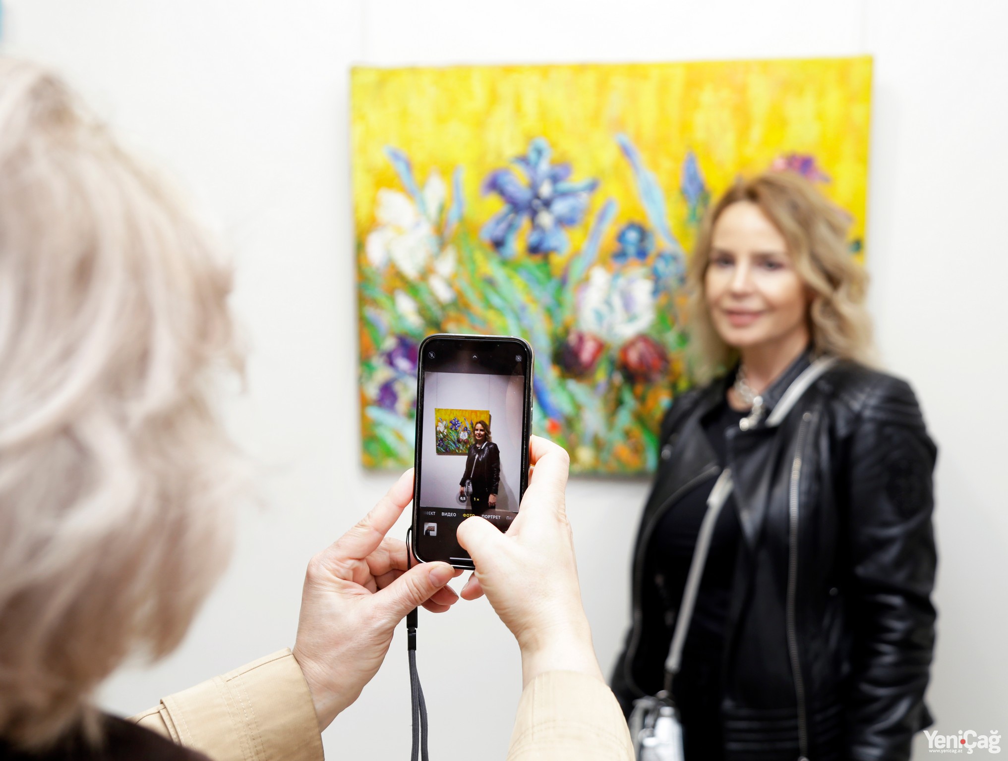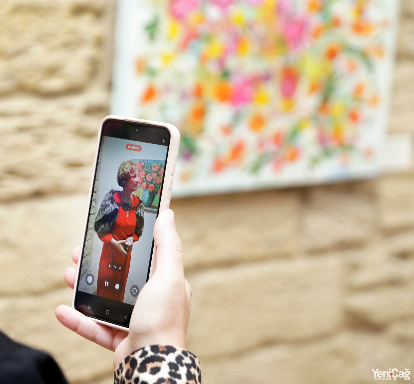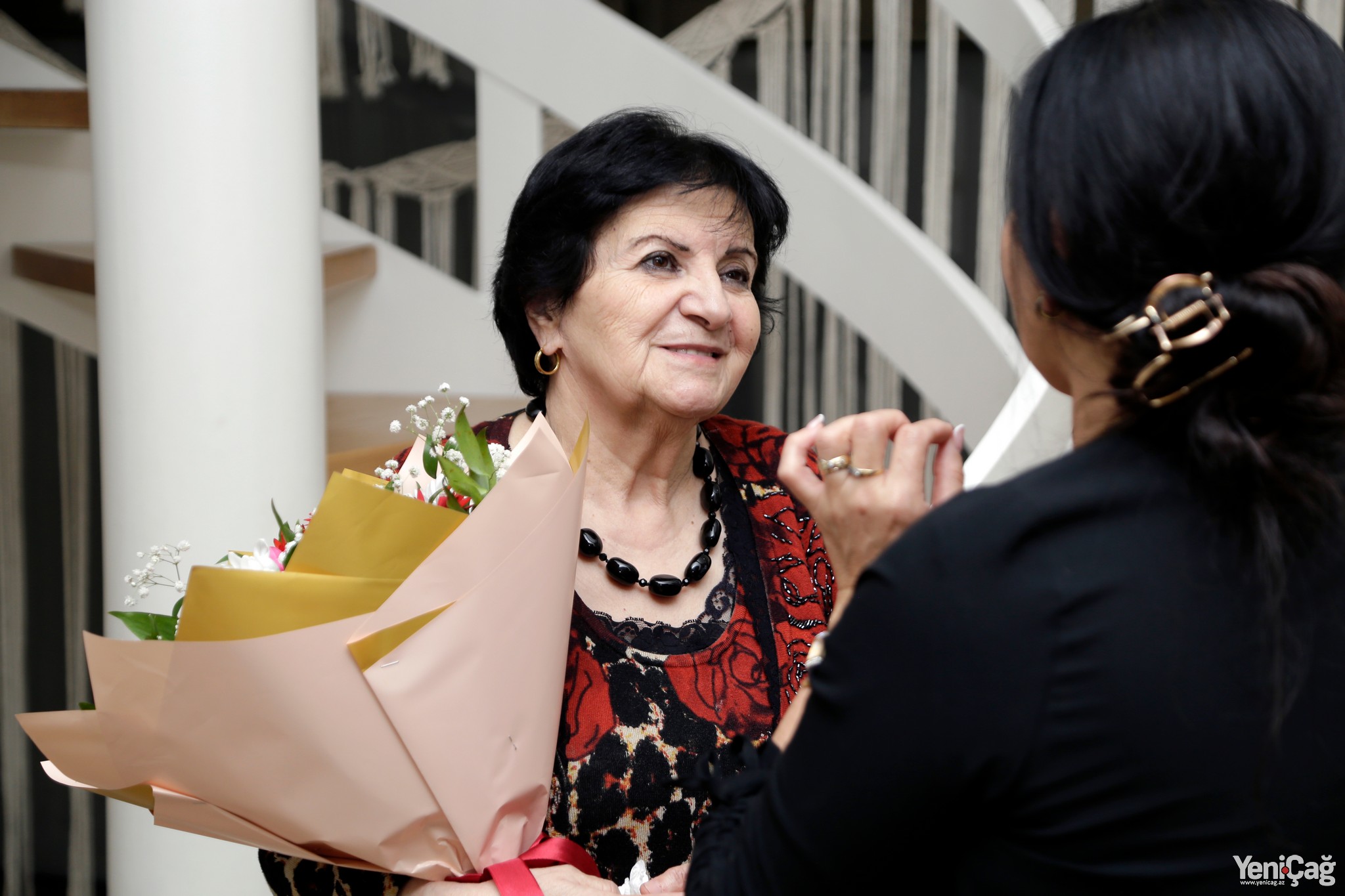 На протяжении вечера Ламия Рза находилась в центре внимания. Она встречала гостей, принимала поздравления, рассказывала о представленных работах, историях их создания и т.д.