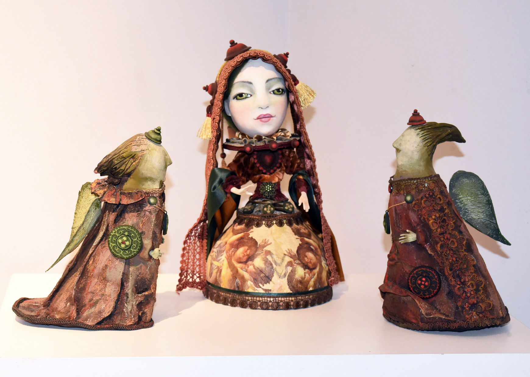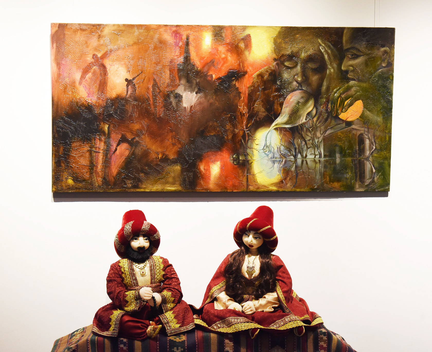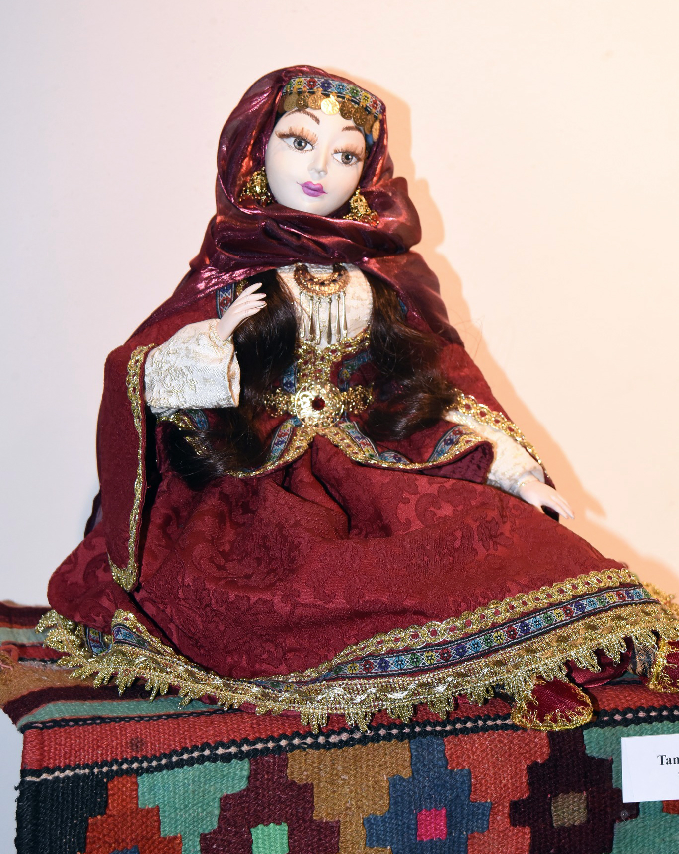 На выставке представлены куклы, созданные по мотивам азербайджанского фольклора, литературных произведений и любимых сказочных персонажей.