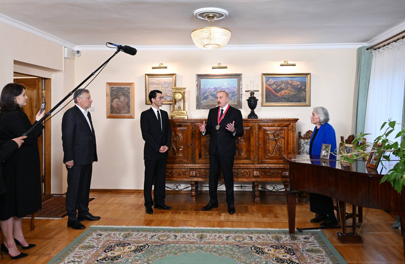 Я помню нашу встречу и, кстати, фотография о нашей встрече тоже висит среди прочих фотографий, 2008 год. И как вы отметили, первый орден Дружбы («Достлуг») был вручен Чингизу Айтматову. Тогда этот орден был только недавно утвержден мной, по моей инициативе. И, откровенно говоря, я думал, – все-таки есть символизм в цифрах, – я думаю, кому же вручить орден номер один. И, безусловно, первое, что пришло в голову, это какому-то представителю тюркского мира, а дальше уже как бы мысли шли сами собой, и решение было, может быть и спонтанным, но с другой стороны все спонтанные решения глубоко пережиты тобой в предыдущей жизни, в предыдущее время. Поэтому оно было совершенно осознанным, единственно правильным и это тоже является для нас предметом особой гордости, что номер один орден «Достлуг» был вручен Чингизу Торекуловичу. Я, когда выступал на открытии памятника ему – в этом году в Баку, на одной из центральных улиц был открыт памятник Чингизу Айтматову, – сказал, что мне показалось, что ничто не предвещало, что его скоро с нами не будет, потому что он приехал в Баку в хорошем настроении, мы долго с ним беседовали, он рассказывал о своих будущих планах, выглядел очень хорошо. Я порадовался искренне этому, но потом, через несколько месяцев его не стало. Это вызывает, конечно, чувство горечи, потому что он мог бы еще жить, радовать своих близких, окружать их своей заботой, теплом, а также мог бы еще написать очень много произведений именно актуальных сегодня. Потому что с того времени, как он покинул этот мир, произошло столько много событий и в нашем регионе, и в мире, что его слово было бы очень важным, я думаю, не только для нашего региона, но и вообще для мировой политики, потому что он наряду с творческой деятельностью, также был и очень авторитетным общественным деятелем.