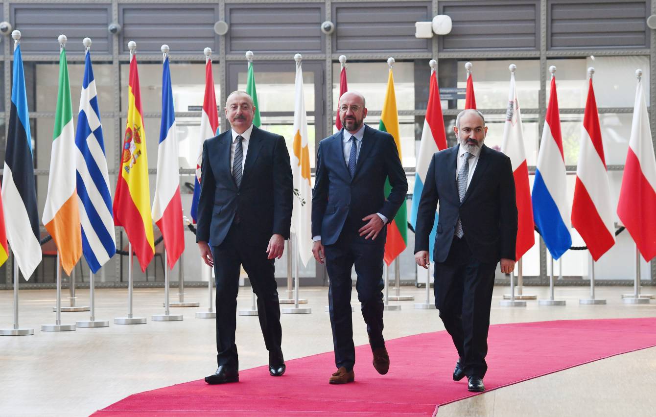 14 мая в Брюсселе состоялась встреча Президента Азербайджанской Республики Ильхама Алиева с президентом Совета Европейского Союза Шарлем Мишелем и премьер-министром Республики Армения Николом Пашиняном.