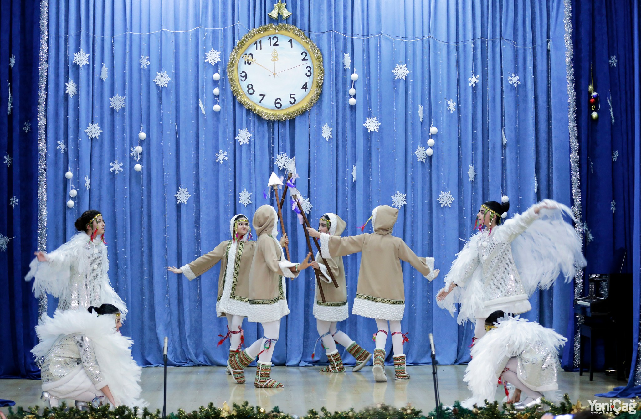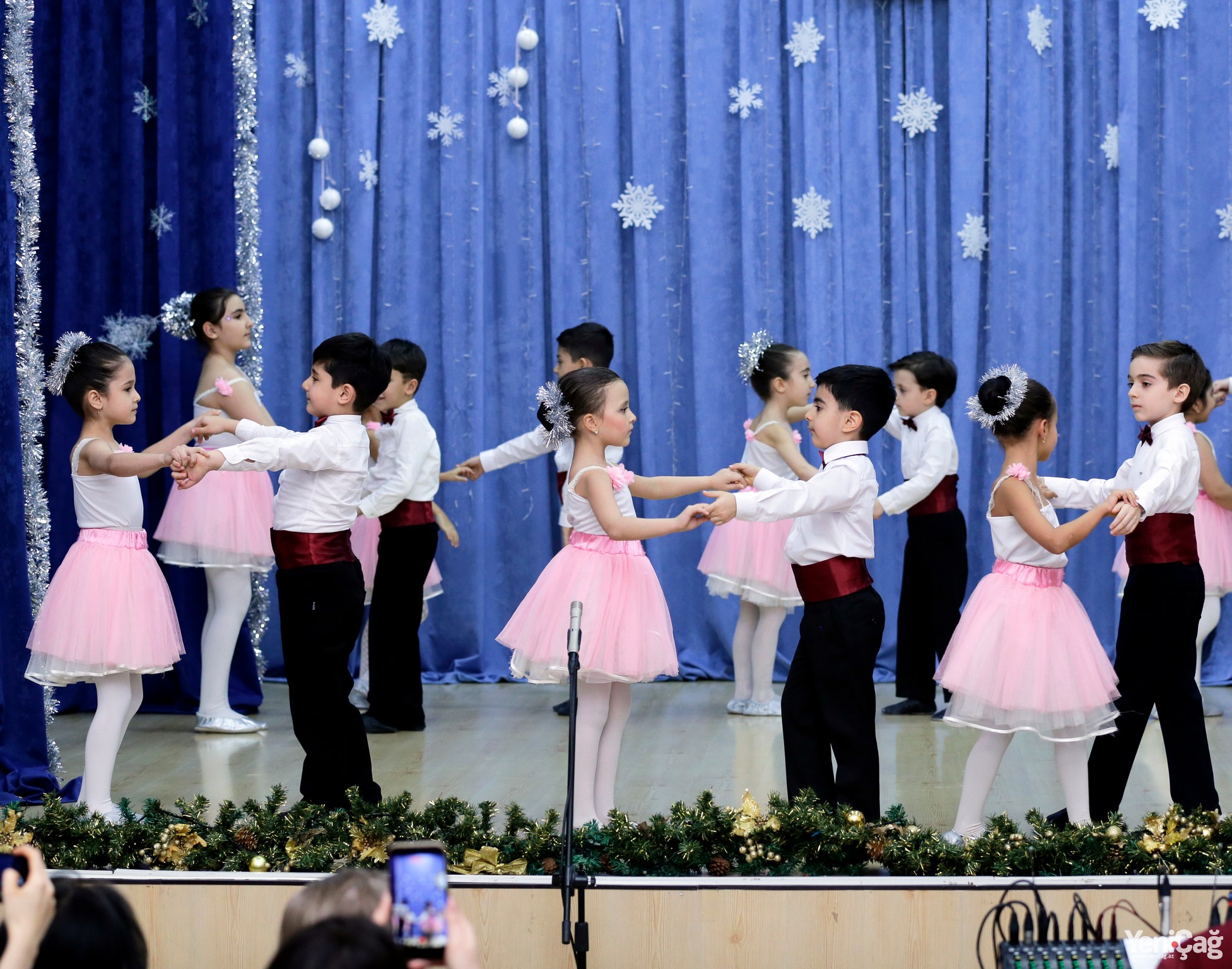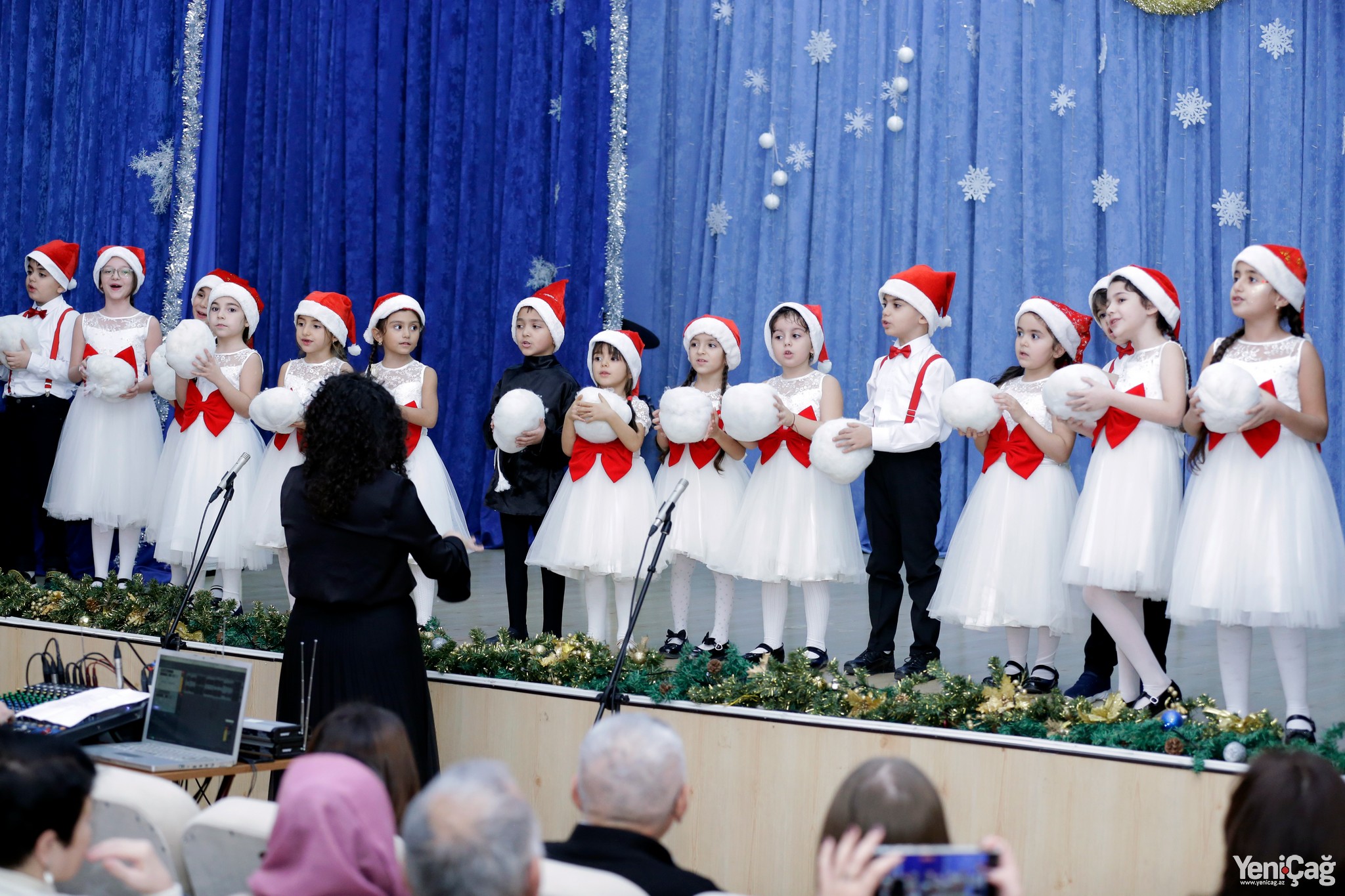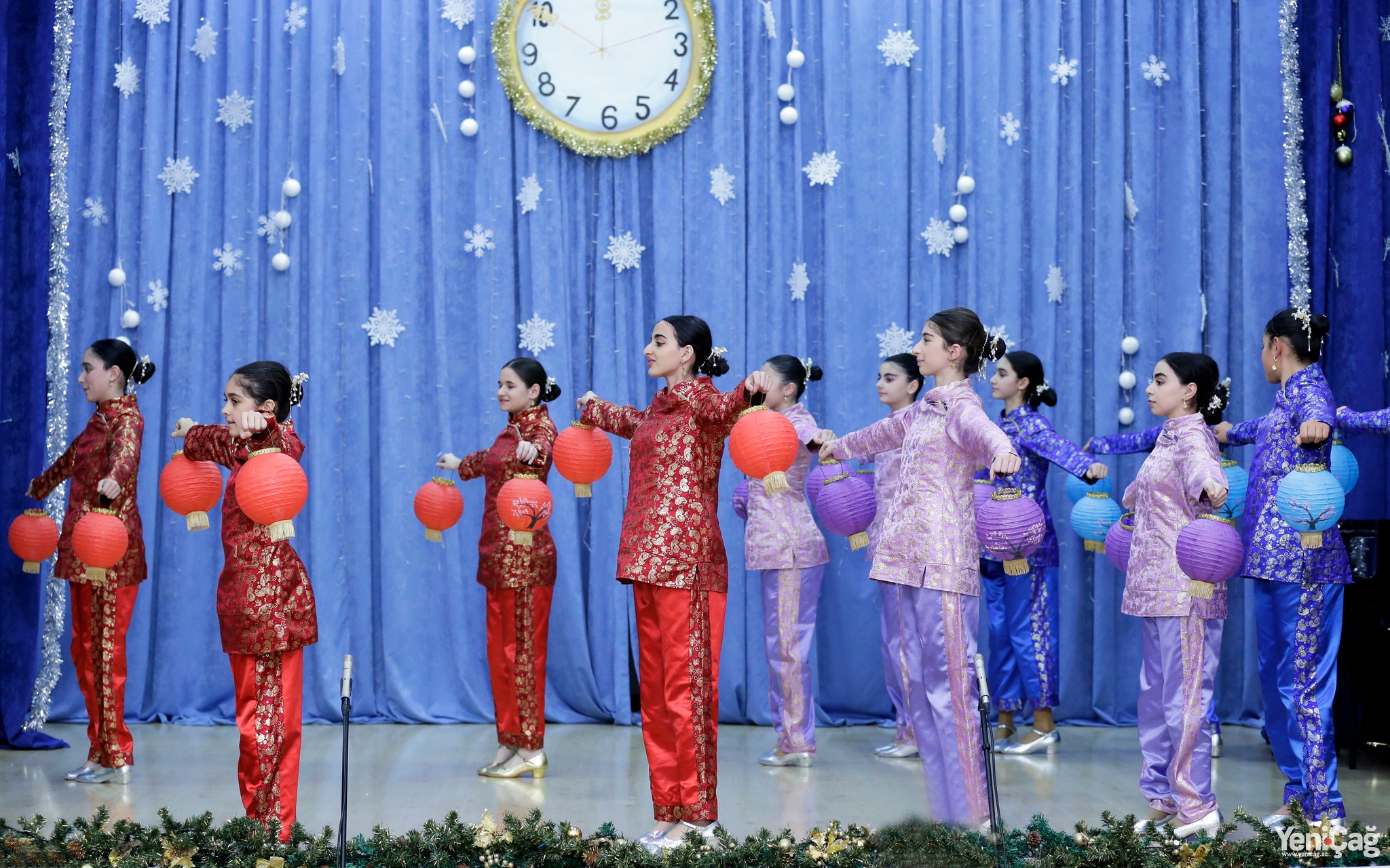Публике были представлены яркие, красочные и по-настоящему праздничные номера, создающие атмосферу новогоднего волшебства. Были исполнены произведения азербайджанских и зарубежных композиторов, представлены театрализованные сценки, хоровые и гимнастические выступления, а также танцы разных народов мира — грузинский, таджикский, китайский, якутский, которые с большой теплотой и воодушевлением были встречены гостями вечера.