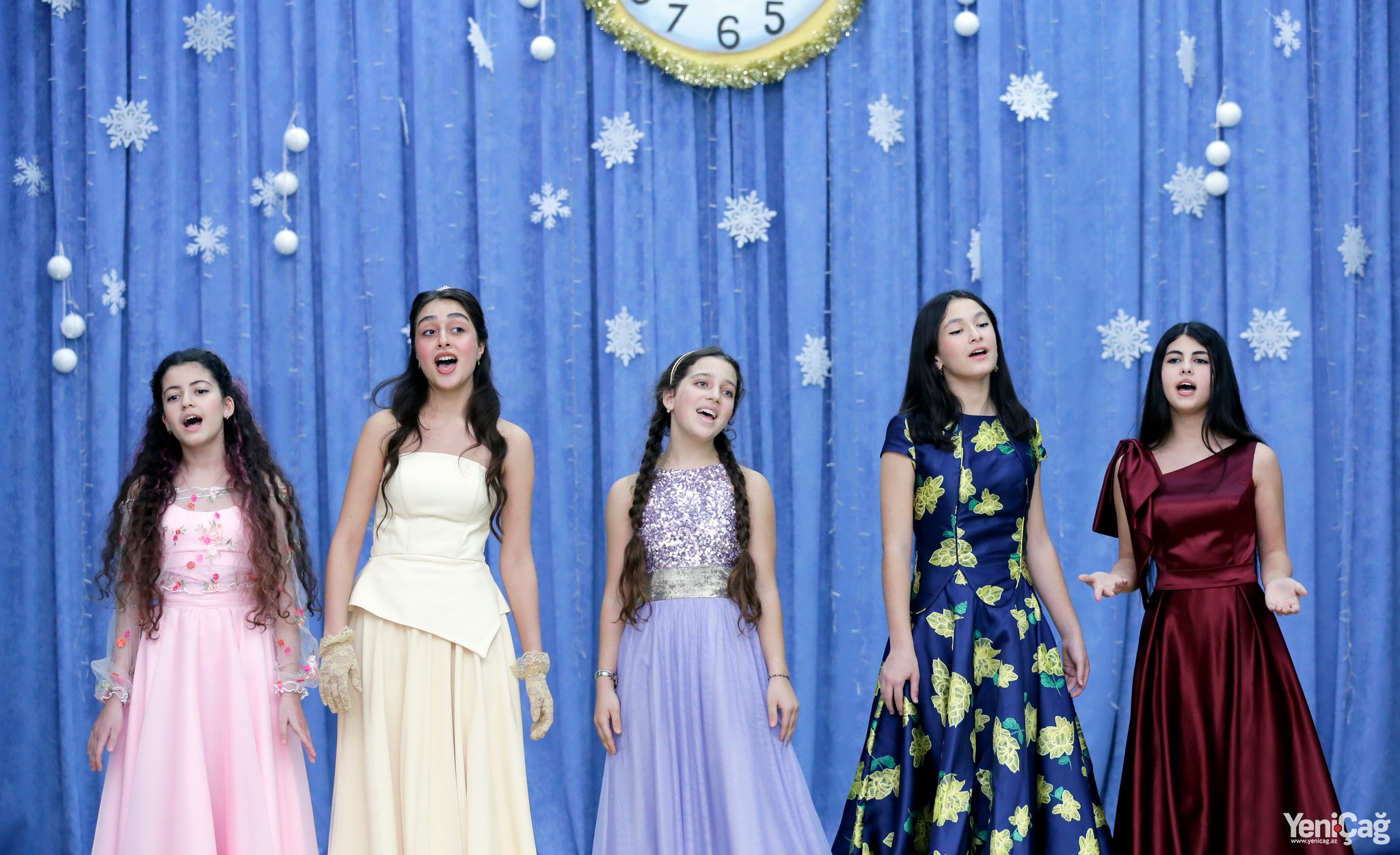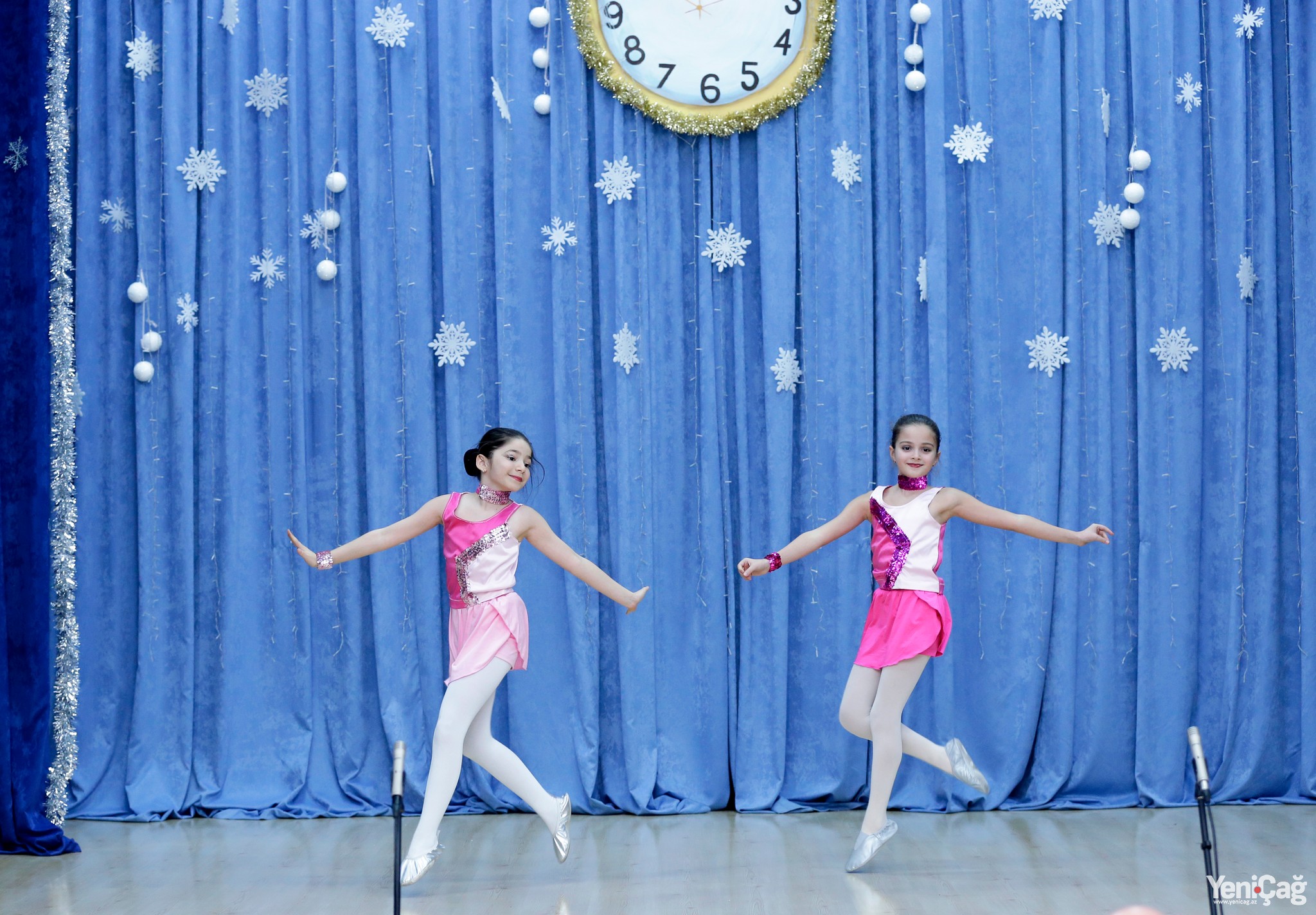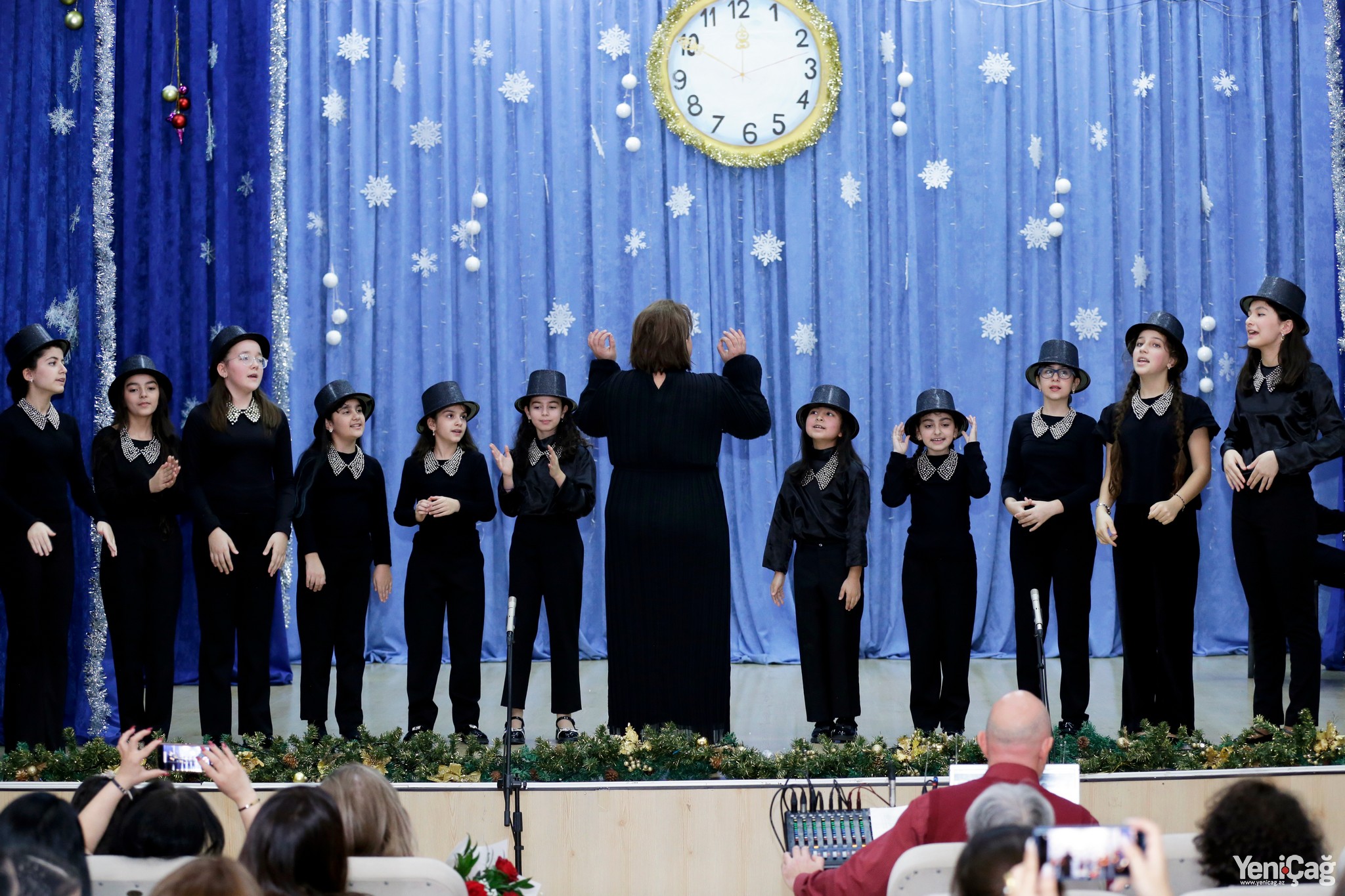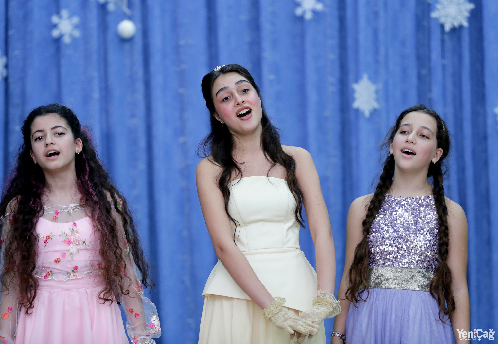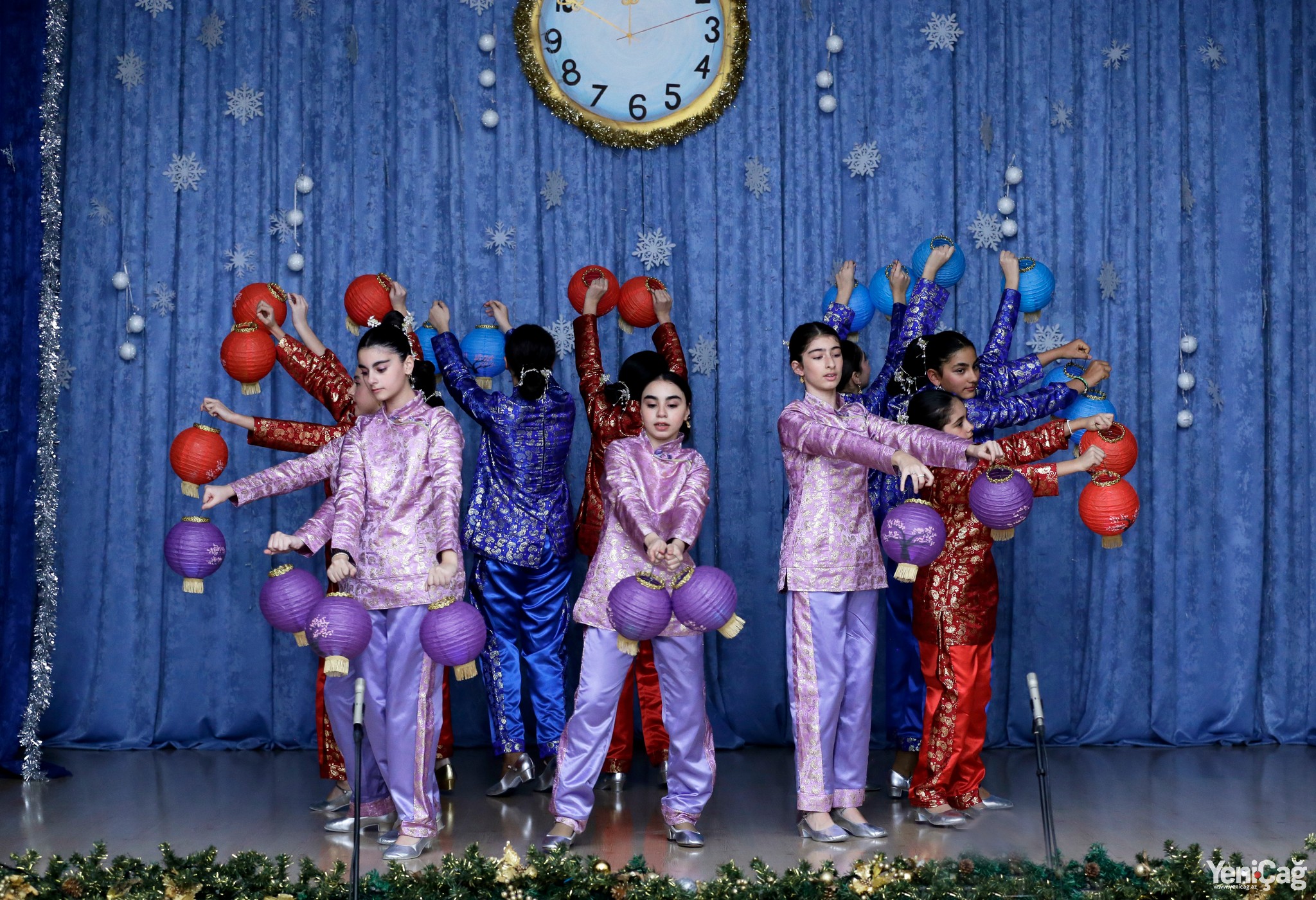 Публике были представлены яркие, красочные и по-настоящему праздничные номера, создающие атмосферу новогоднего волшебства. Были исполнены произведения азербайджанских и зарубежных композиторов, представлены театрализованные сценки, хоровые и гимнастические выступления, а также танцы разных народов мира — грузинский, таджикский, китайский, якутский, которые с большой теплотой и воодушевлением были встречены гостями вечера.