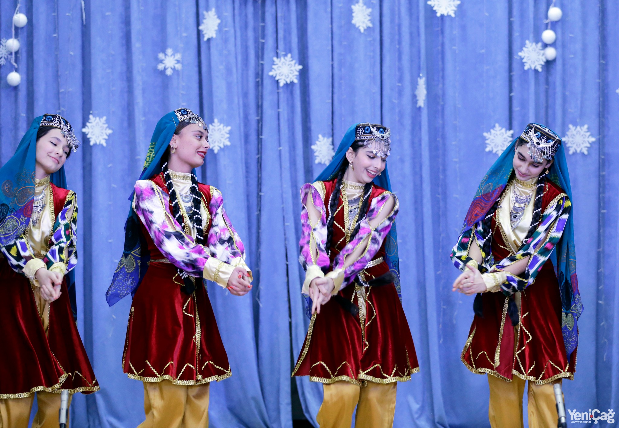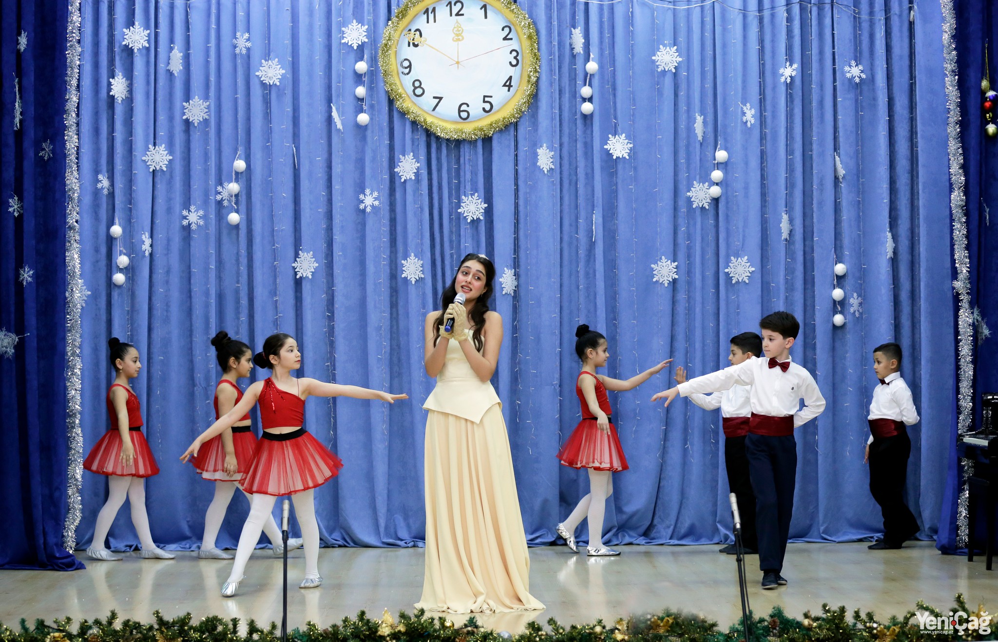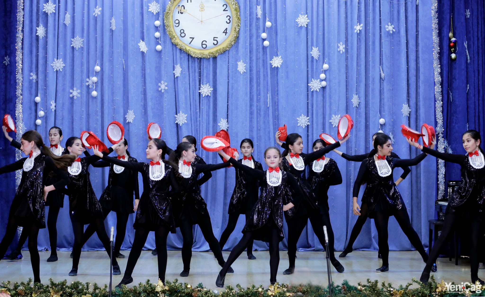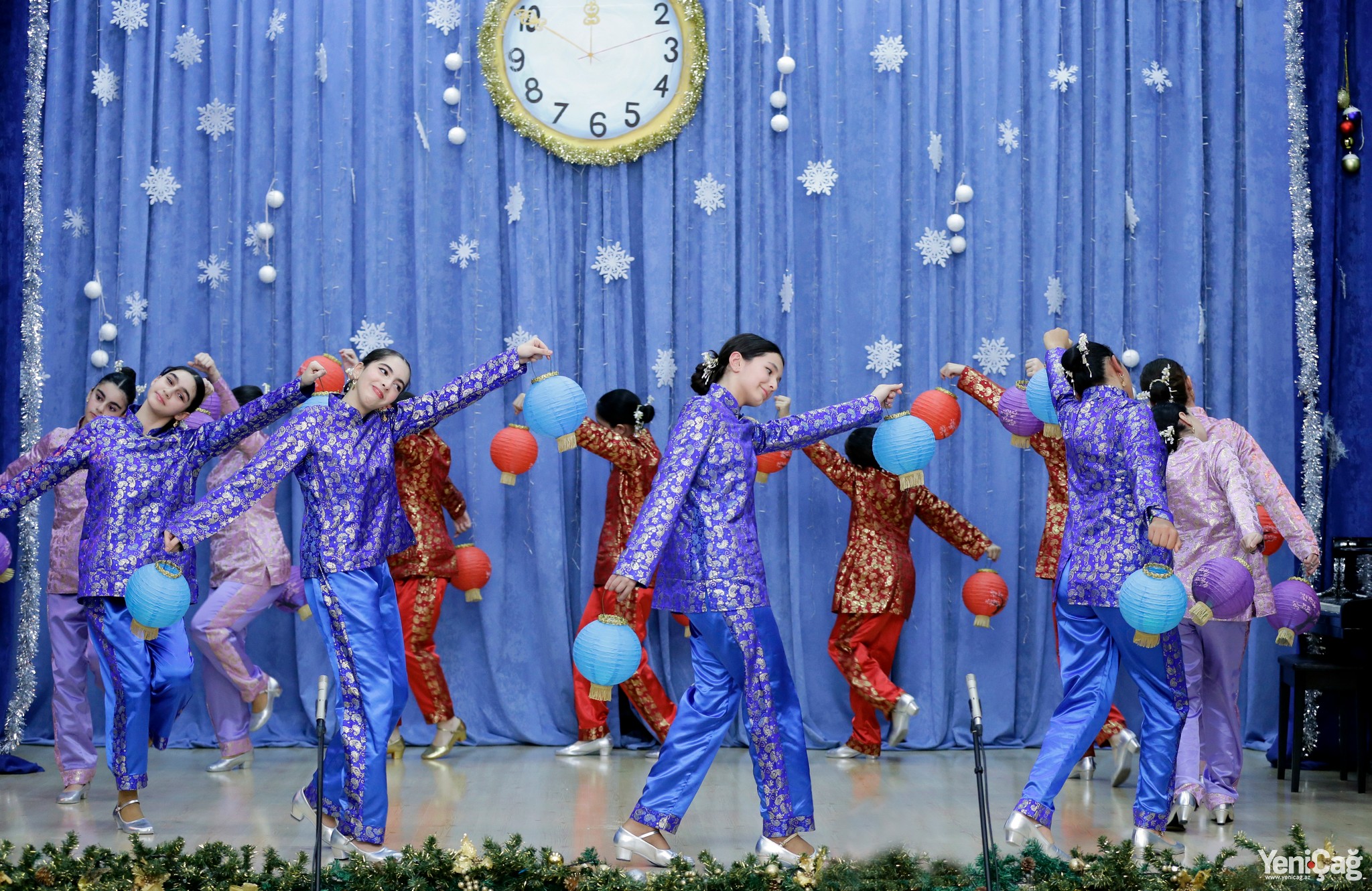 Публике были представлены яркие, красочные и по-настоящему праздничные номера, создающие атмосферу новогоднего волшебства. Были исполнены произведения азербайджанских и зарубежных композиторов, представлены театрализованные сценки, хоровые и гимнастические выступления, а также танцы разных народов мира — грузинский, таджикский, китайский, якутский, которые с большой теплотой и воодушевлением были встречены гостями вечера.