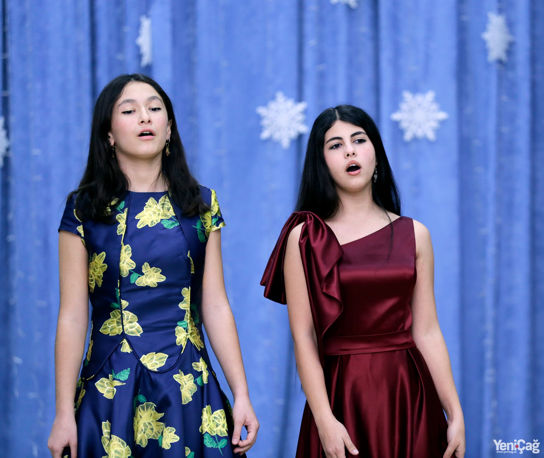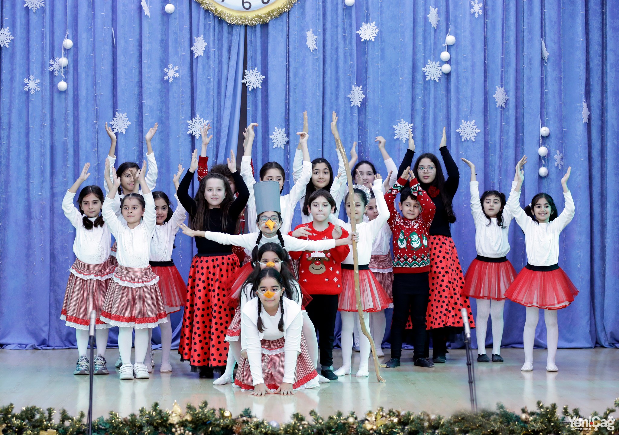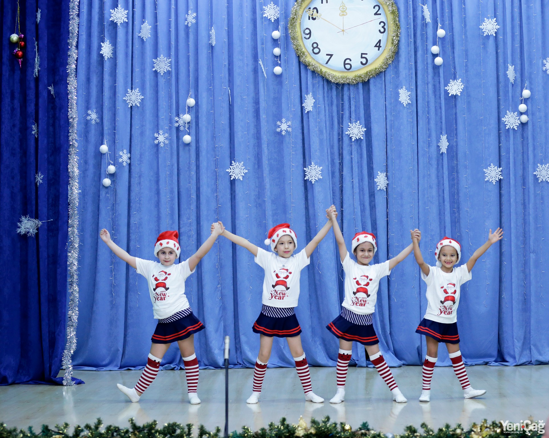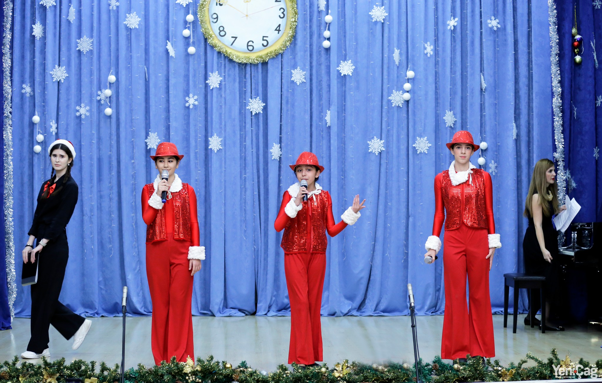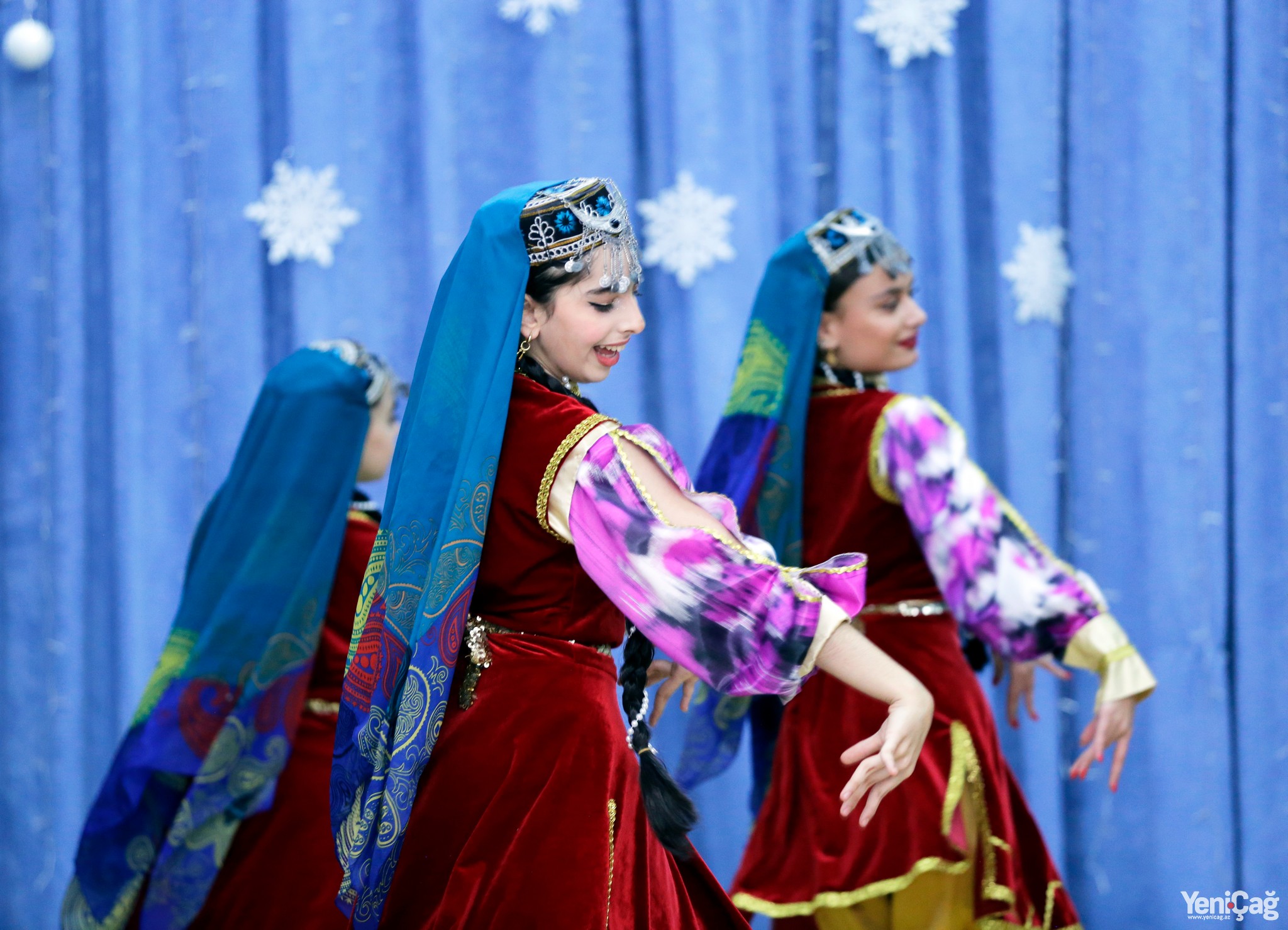 Публике были представлены яркие, красочные и по-настоящему праздничные номера, создающие атмосферу новогоднего волшебства. Были исполнены произведения азербайджанских и зарубежных композиторов, представлены театрализованные сценки, хоровые и гимнастические выступления, а также танцы разных народов мира — грузинский, таджикский, китайский, якутский, которые с большой теплотой и воодушевлением были встречены гостями вечера.