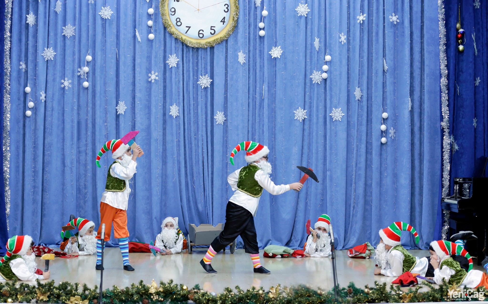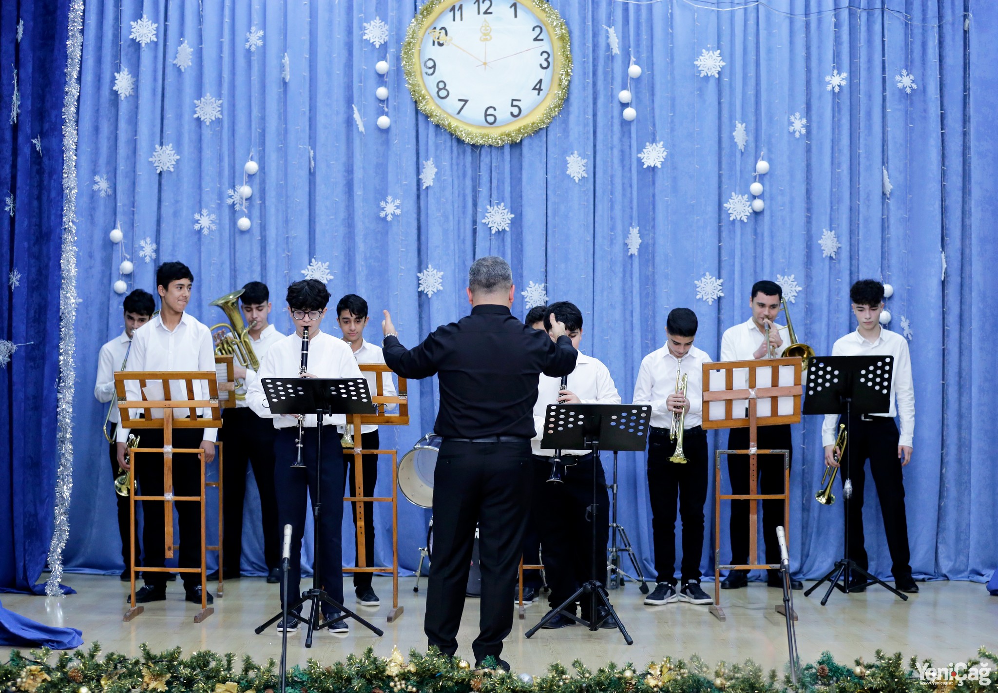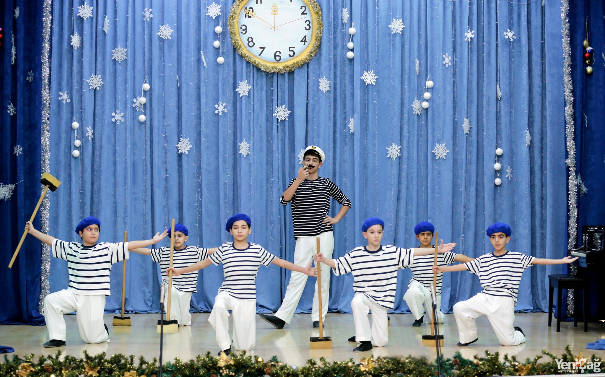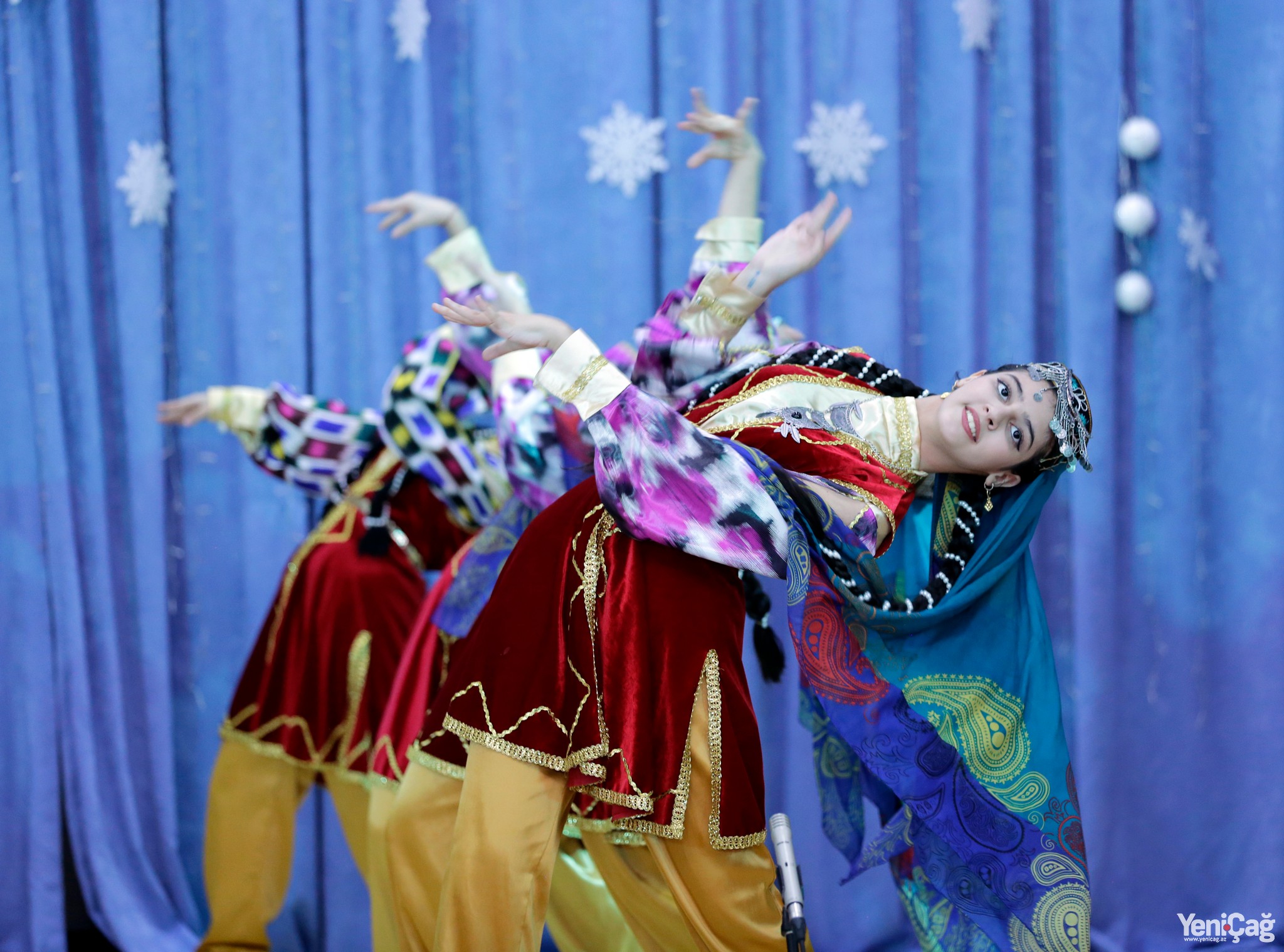 Публике были представлены яркие, красочные и по-настоящему праздничные номера, создающие атмосферу новогоднего волшебства. Были исполнены произведения азербайджанских и зарубежных композиторов, представлены театрализованные сценки, хоровые и гимнастические выступления, а также танцы разных народов мира — грузинский, таджикский, китайский, якутский, которые с большой теплотой и воодушевлением были встречены гостями вечера.