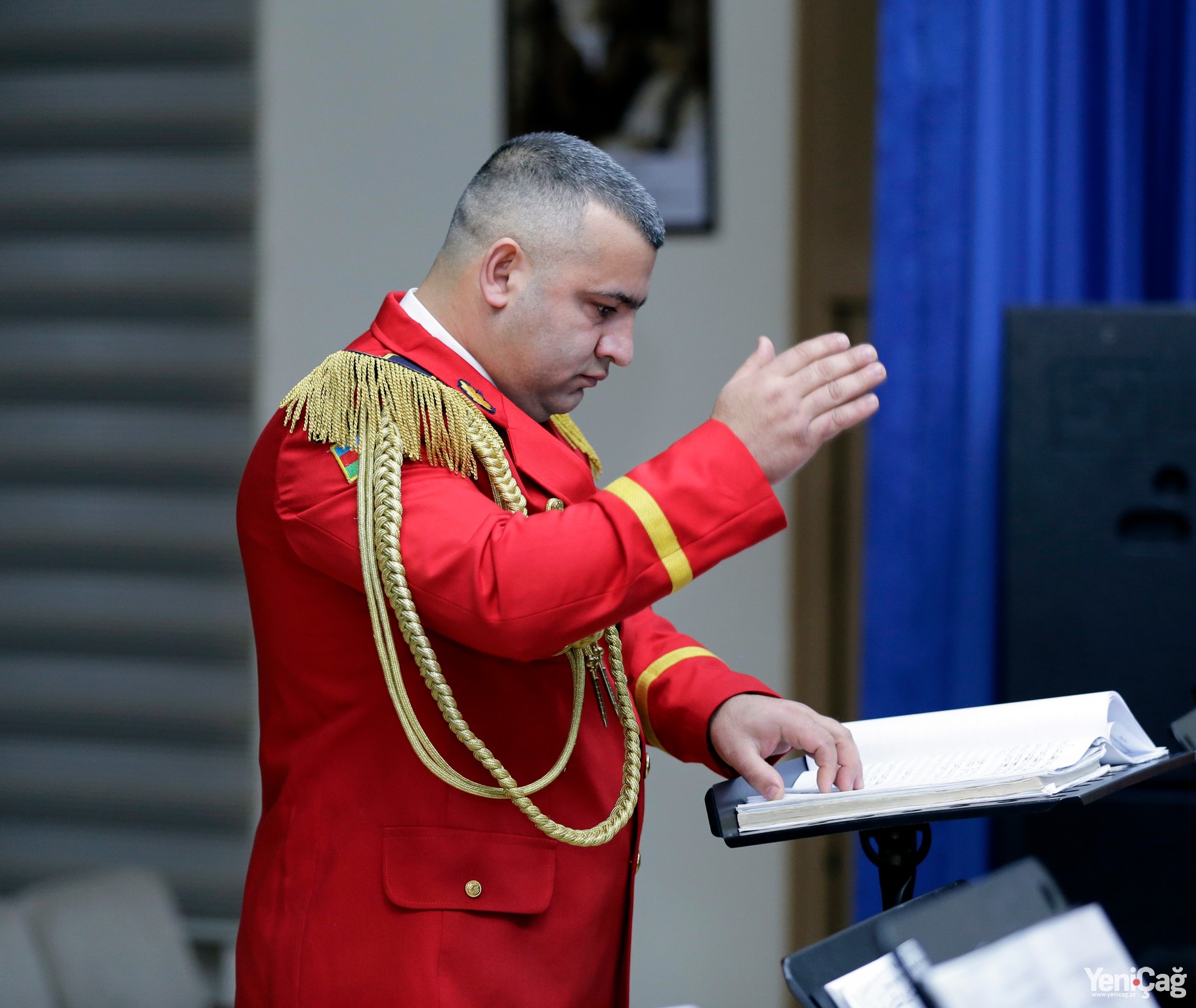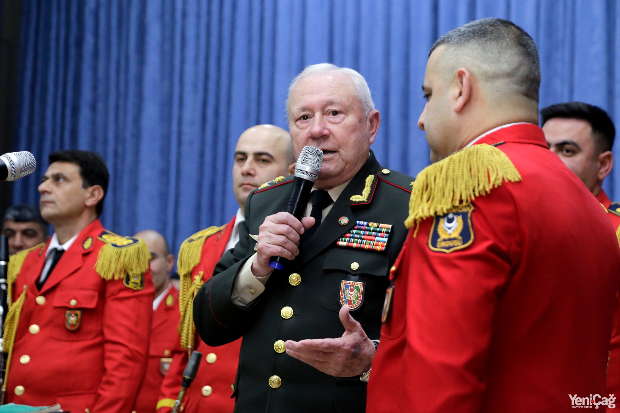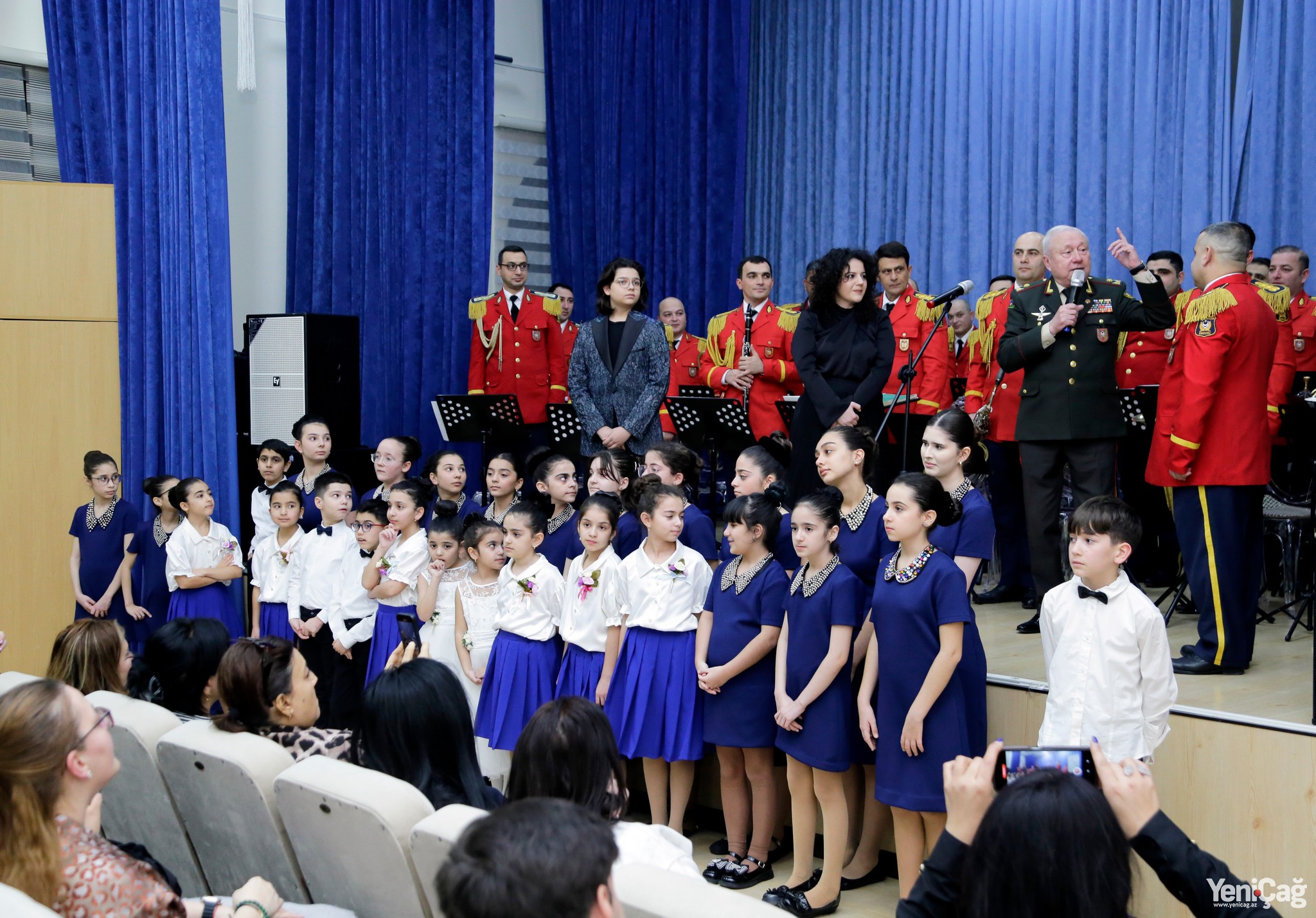 Далее на сцену был приглашен сам генерал-майор Юсиф Ахундзаде, который выразил глубокую благодарность организаторам мероприятия и Государственной детской филармонии за проведение концерта, а также дал свои рекомендации дирижеру и оркестрантам.