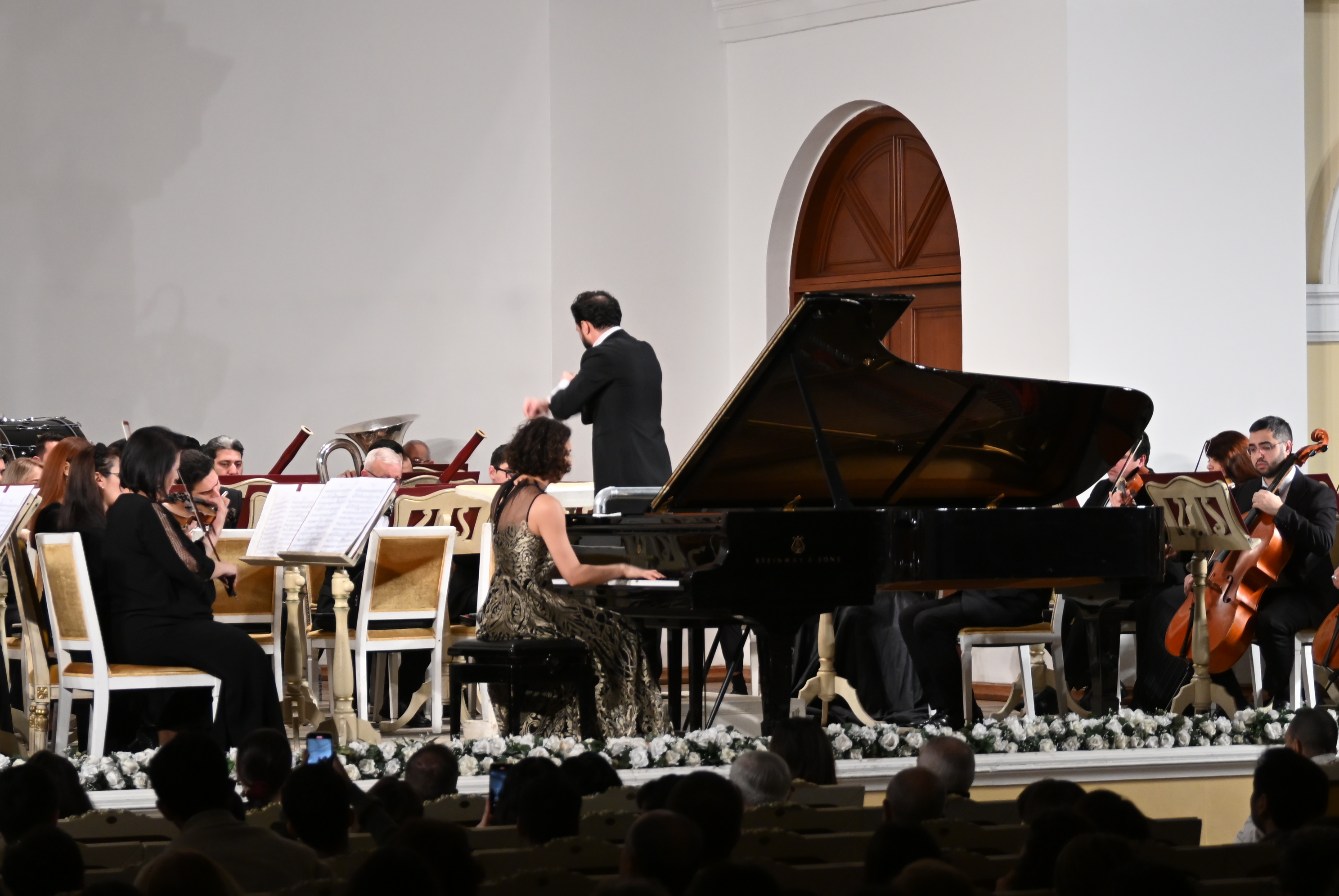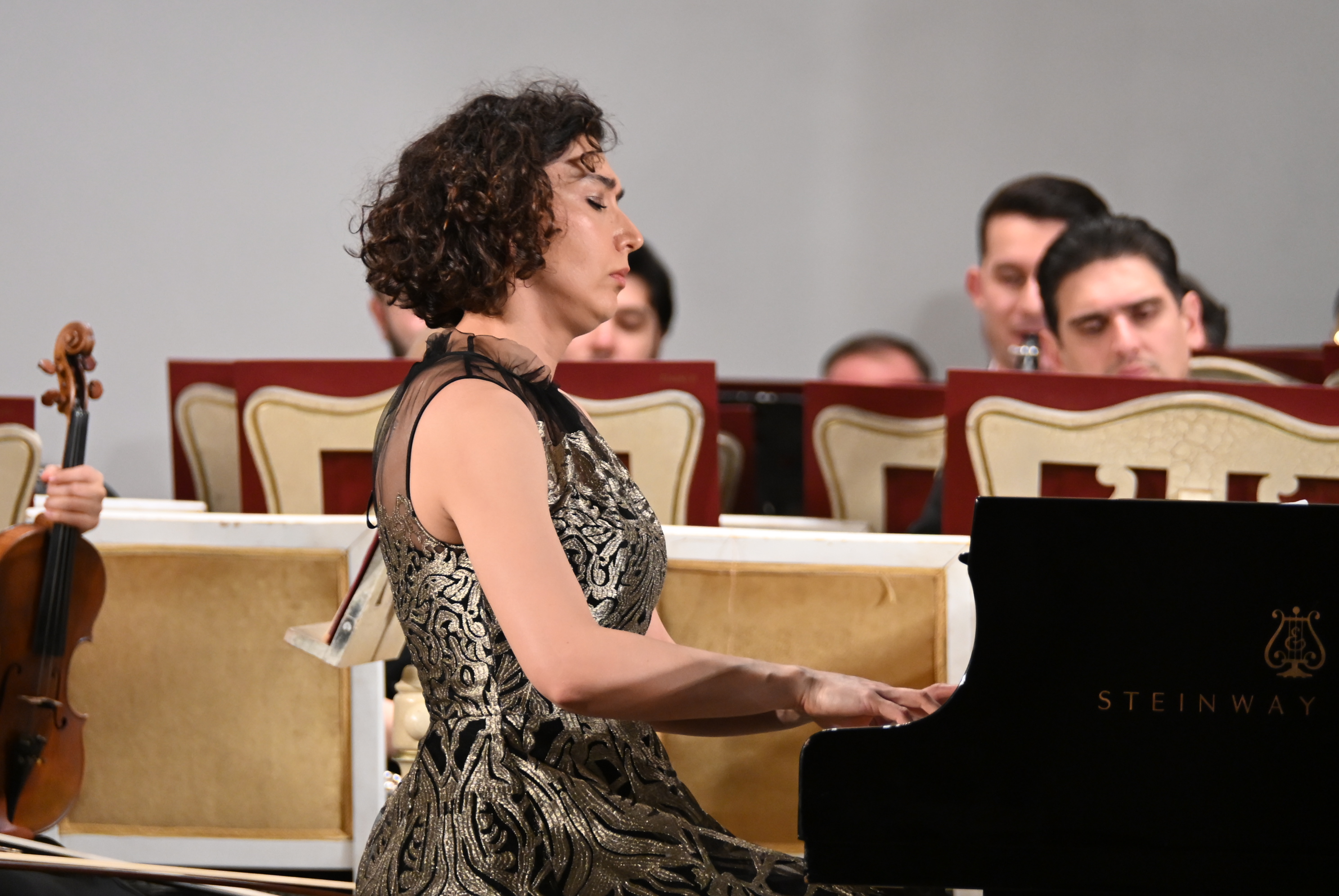 Затем была представлена наполненный лиризмом и эмоциональной глубиной Концерт №2 для фортепиано с оркестром до минор, соч. 18 Сергея Рахманинова, где в качестве солистки выступила пианистка Гюнель Казымова, виртуозная игра которой вызвала продолжительные аплодисменты зрительского зала.