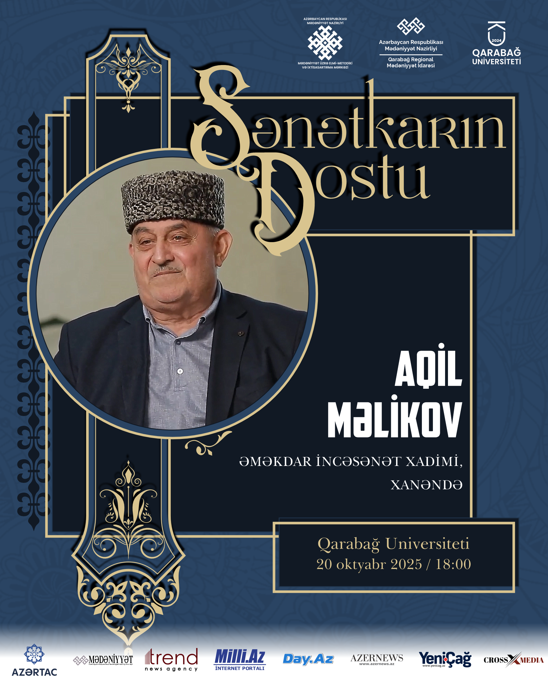 20 октября в рамках проекта «Друг мастера» (Sənətkarın dostu) MEMİM при поддержке факультета искусств Карабахского университета состоится встреча с певцом-ханенде, педагогом, заслуженным деятелем искусств Агилем Меликовым.
