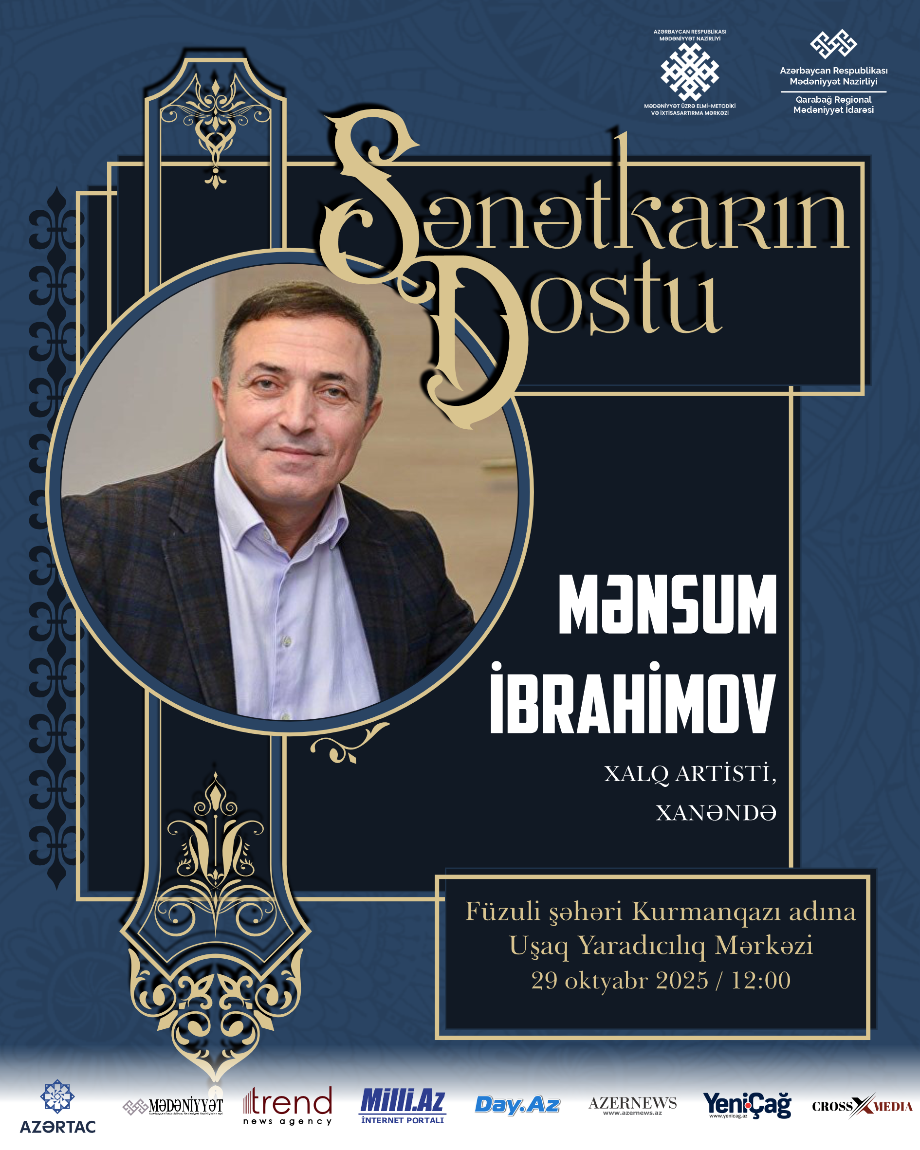 Следующая встреча в рамках «Друг мастера» состоится 29 октября в Центре детского творчества имени Курмангазы в Физули с участием народного артиста, певца, педагога Мансума Ибрагимова.