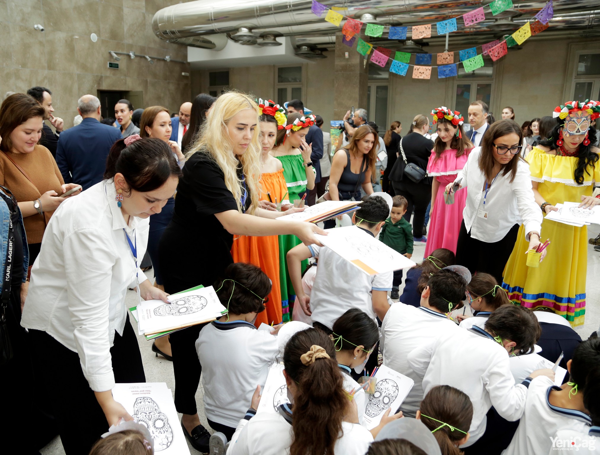 Для юных посетителей мероприятия, среди которых также оказались ученики школы-лицея №6 имени Т.Исмайлова, был проведен мастер-класс, посвященный ознакомлению с мексиканской культурой и традициями празднования Дня мёртвых. Они раскрашивали праздничные образы в любимые цвета, надевали маски и танцевали под песни, посвящённые данному празднику.