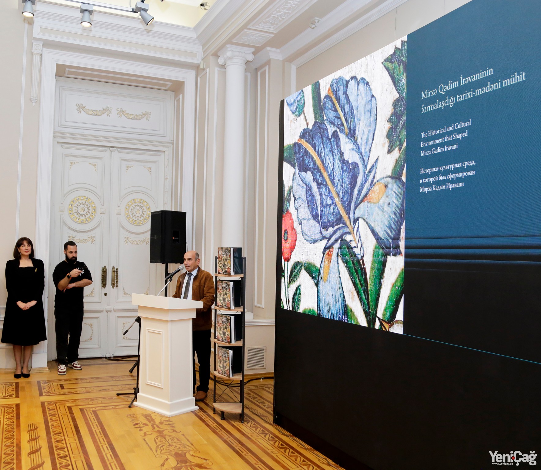 Один из авторов книги «Мирза Кадым Иравани: художник на рубеже времен», заведующий научно-исследовательским отделом Музея искусств, доктор философии по искусствоведению Тельман Ибрагимов подробно рассказал о ценности данного издания, его особенностях, разделах, собранном материале. Он также отметил, что портретные и орнаментальные работы Мирзы Кадыма Иравани на бумаге, холсте, коже и стекле отражают эстетические воззрения эпохи, а в его композициях сочетаются многослойная культурная среда Иравана XIX века, влияние каджарского стиля, местные ремесленные традиции и западное влияние.