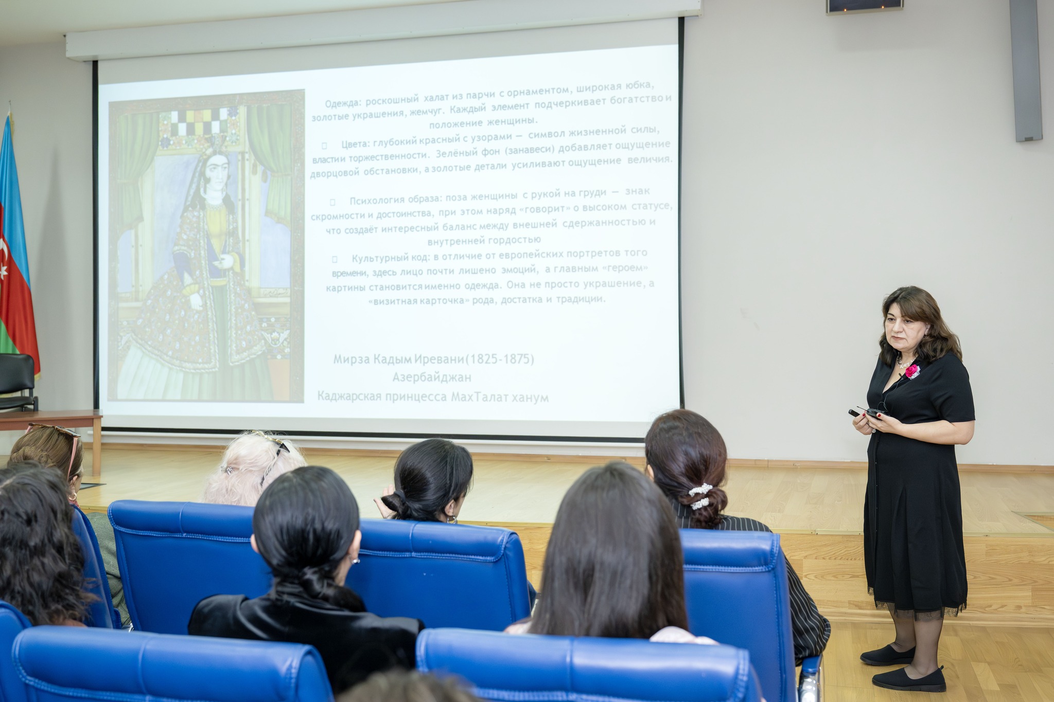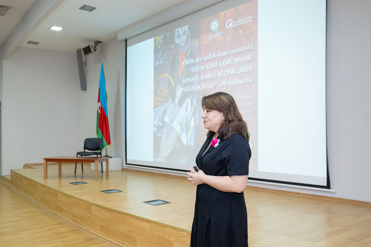 На лекции, проведённой доктором философии по искусствоведению, модельером-дизайнером Севиль Алиевой на основе коллекции Азербайджанского национального музея искусств, была представлена обширная информация о психологии модного выбора, способах самовыражения через одежду и взаимосвязи моды и психики человека.