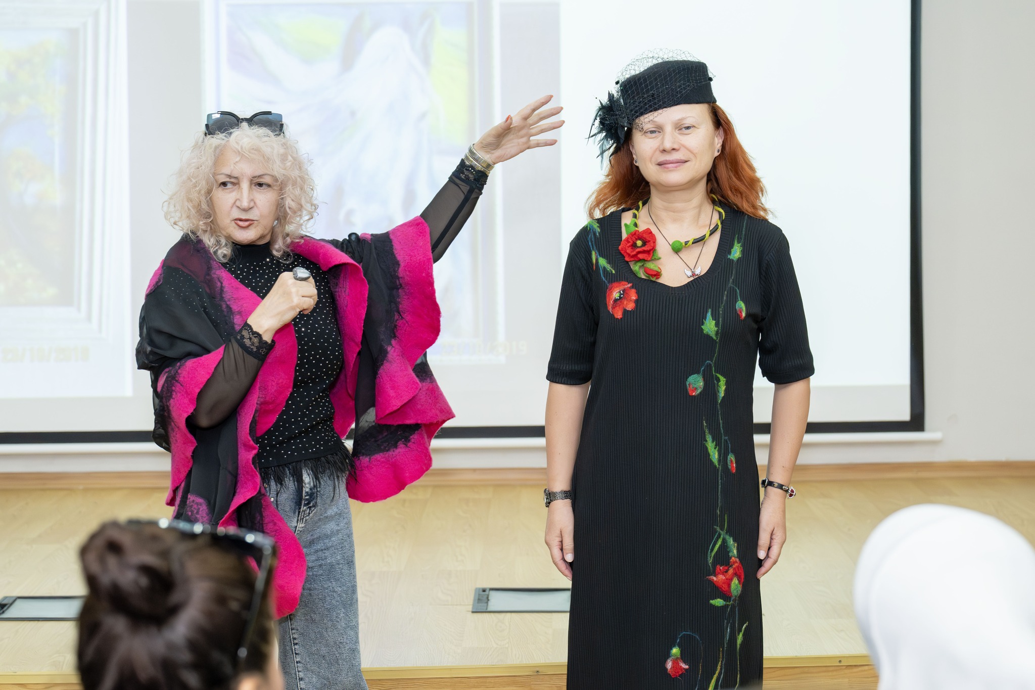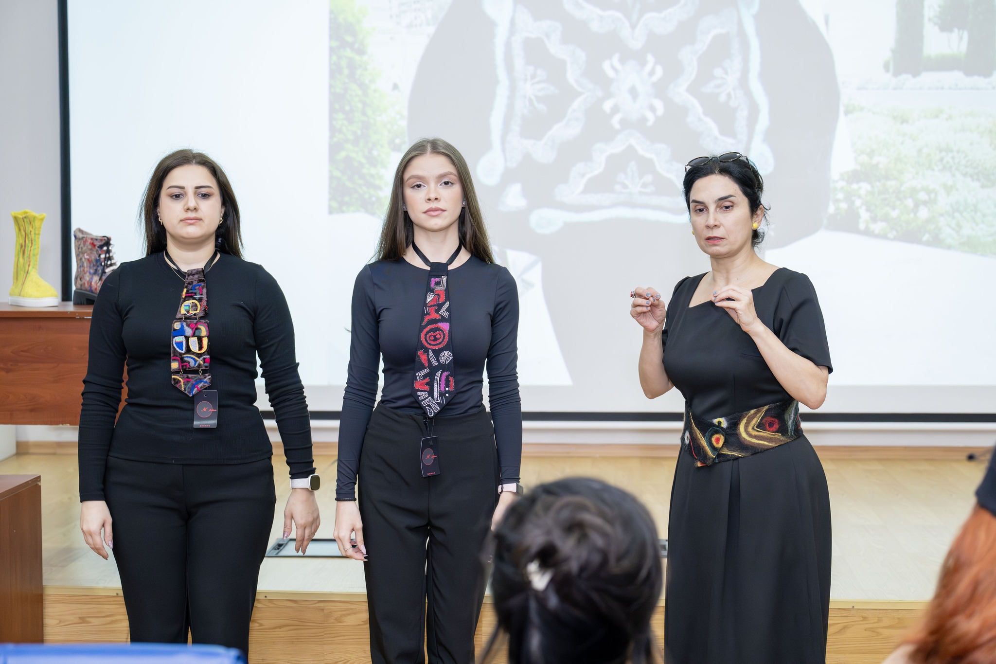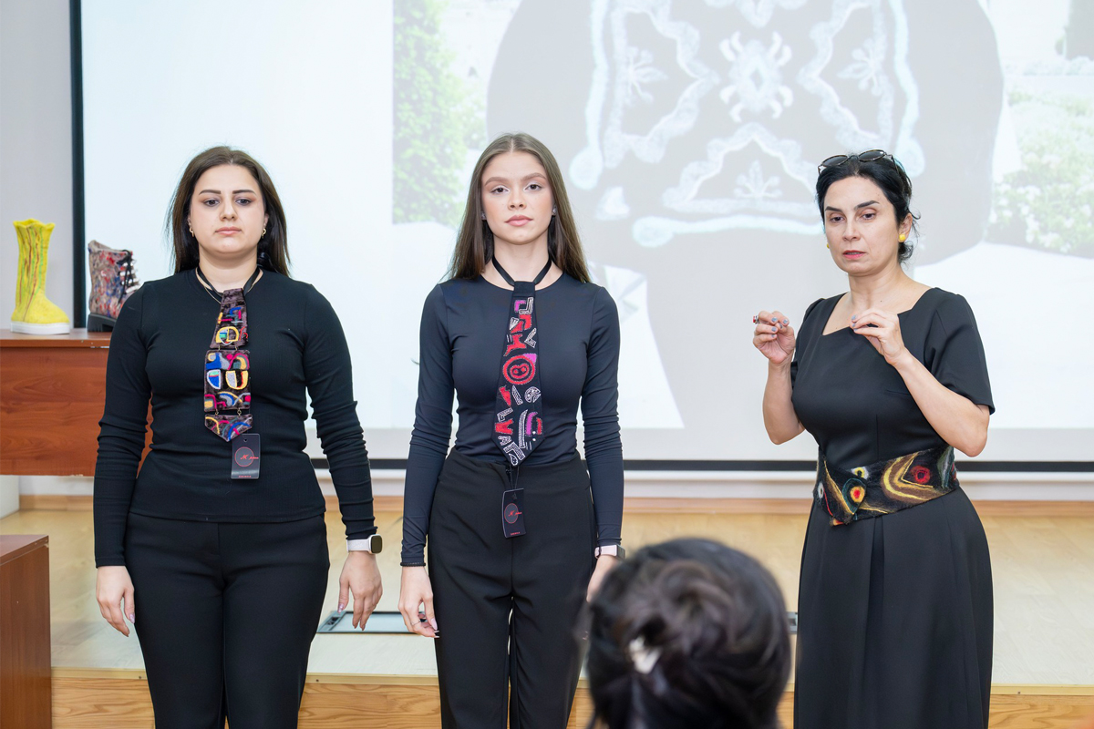 На лекции также выступили и продемонстрировали свои работы член Союза художников Азербайджана и Академии художеств Узбекистана, модельер и дизайнер Мехрибан Алиева, а также модельеры и мастера по войлоку Майя Бабаева и Наиля Керимова,