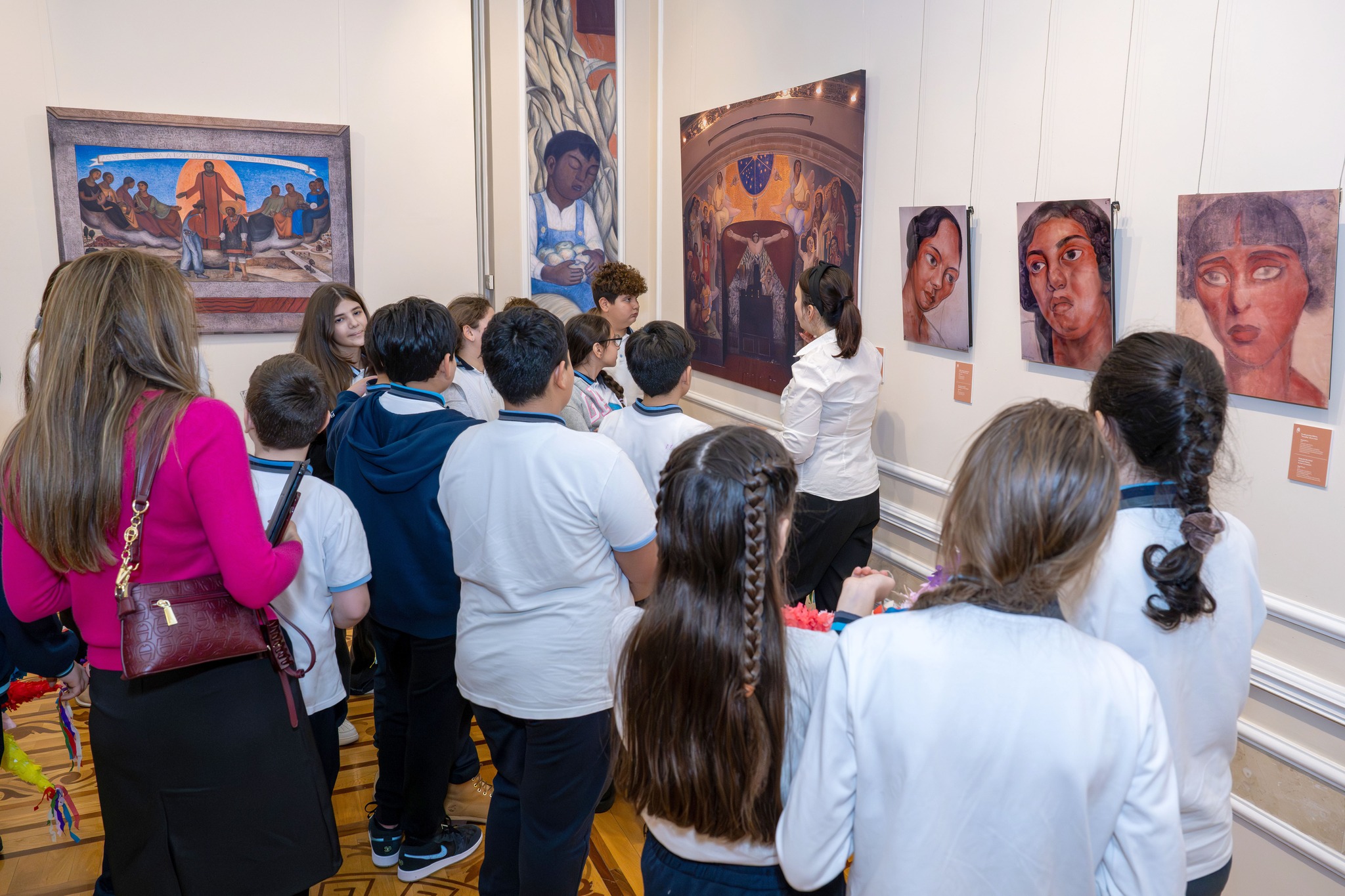 В завершение дня дети получили незабываемые впечатления, познакомившись с выставкой, на которой были представлены фоторепродукции уникальных работ художника Диего Риверы.