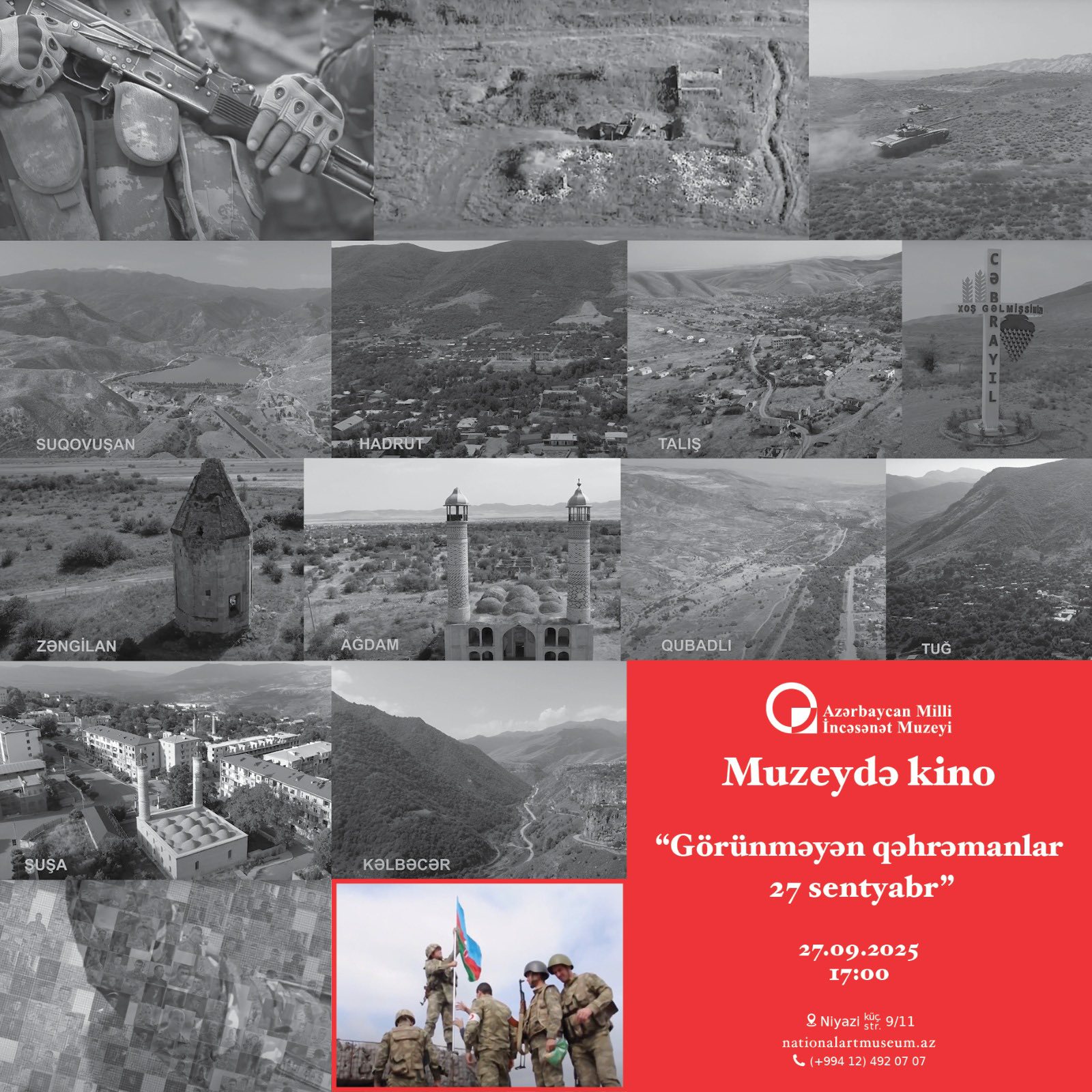 27 сентября в Азербайджанском национальном музее искусств состоялся показ документального фильма «Невидимые герои – 27 сентября», приуроченный ко Дню памяти в рамках проекта «Кино в музее», сообщает «Новая Эпоха».