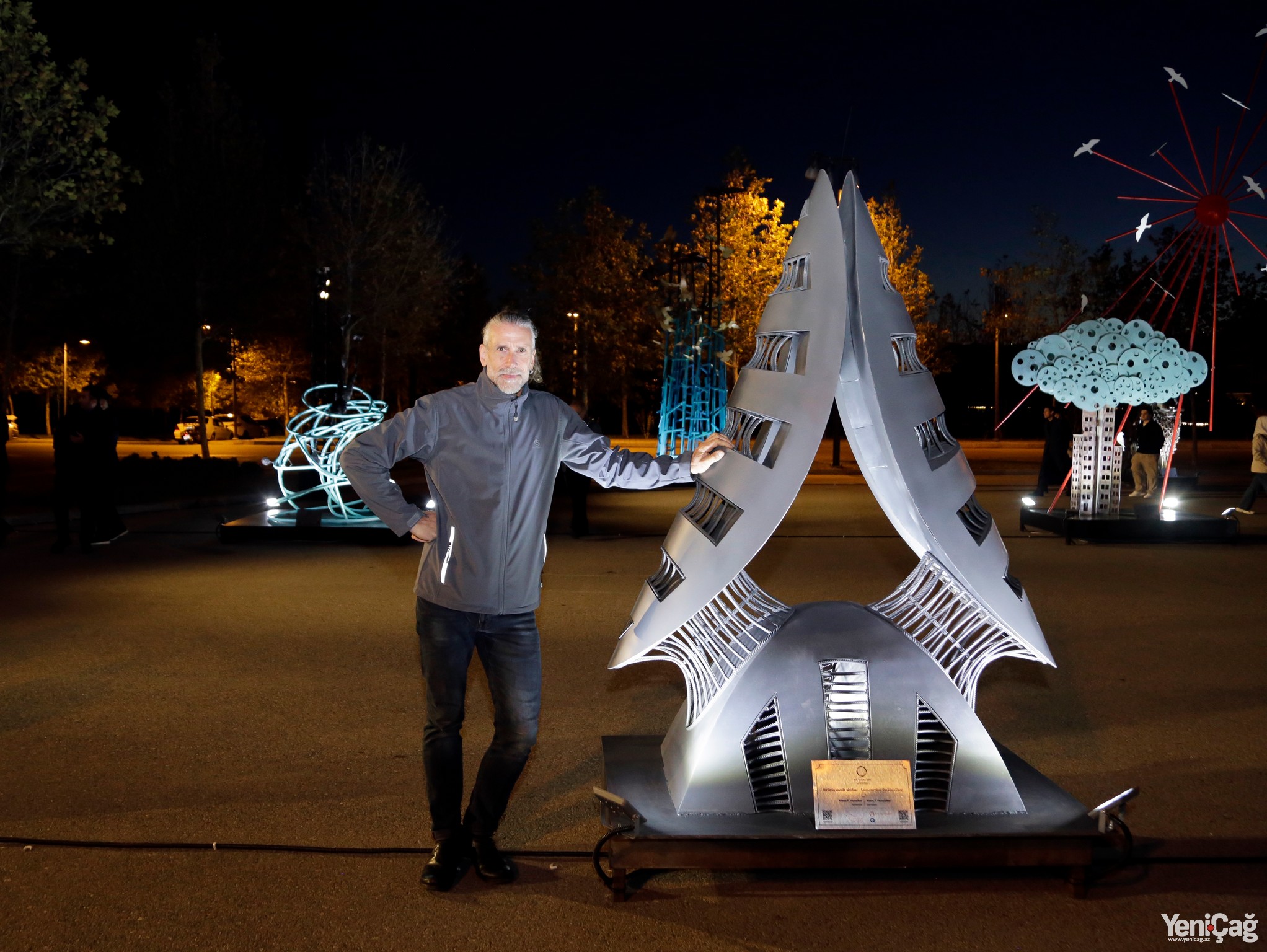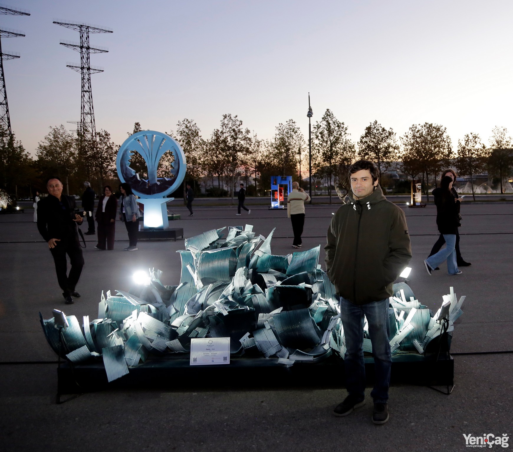 «Учитывая заданную тему, я решил создать инсталляцию под названием «Источник», — подчеркивает скульптор из Узбекистана Улаш Ураков. «Как вы знаете, изменения климата и глобальное потепление не обходят никого стороной, становясь общечеловеческой проблемой, и регион Центральной Азии все больше ощущает на себе их последствия, связанные с нехваткой воды, деградацией земель, пыльными бурями и т.д. К тому же, Узбекистан столкнулся с большой экологической катастрофой — высыханием Аральского моря. В связи с тем, что ледники продолжают таять и запасы пресной воды неустанно уменьшаются, сегодня борьба с изменением климата становится всё более актуальной. В Узбекистане, где издревле занимаются сельским хозяйством, с особым трепетом относятся к воде, так как вода – это жизнь. Без неё всё живое на нашей планете просто не могло бы существовать. Поэтому я решил показать источник, который бьёт ключом и дарит радость людям. С другой стороны, эта также повод задуматься, что нужно беречь природу, чтобы сохранить её и оставить будущим поколениям. Мы же, люди искусства, со своей стороны, тоже хотим внести свою лепту в привлечения внимания мировой общественности к этой проблеме», — сказал скульптор, добавив, что ему очень понравилось в Баку – это красивый город, где живут добрые, отзывчивые и гостеприимные люди.