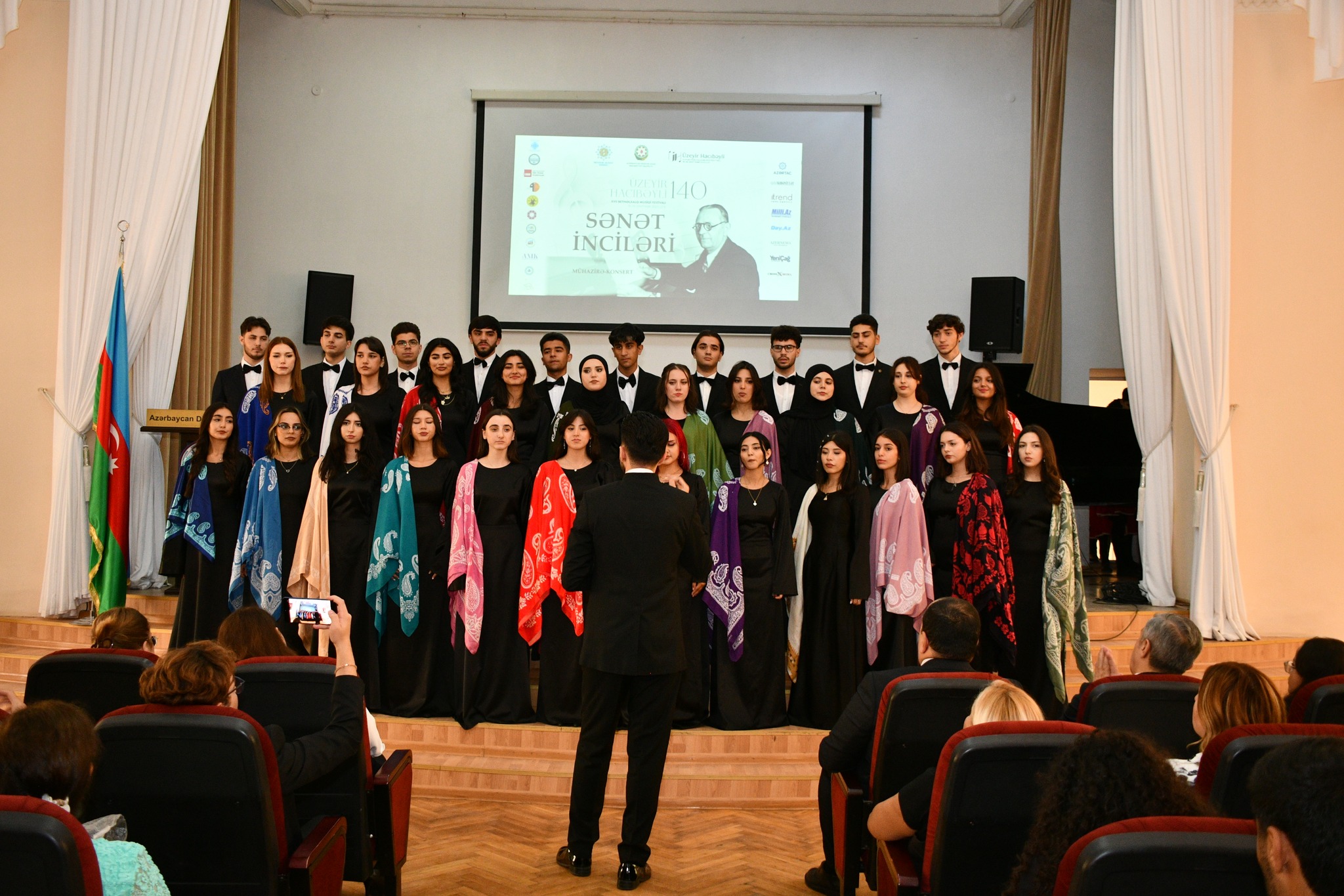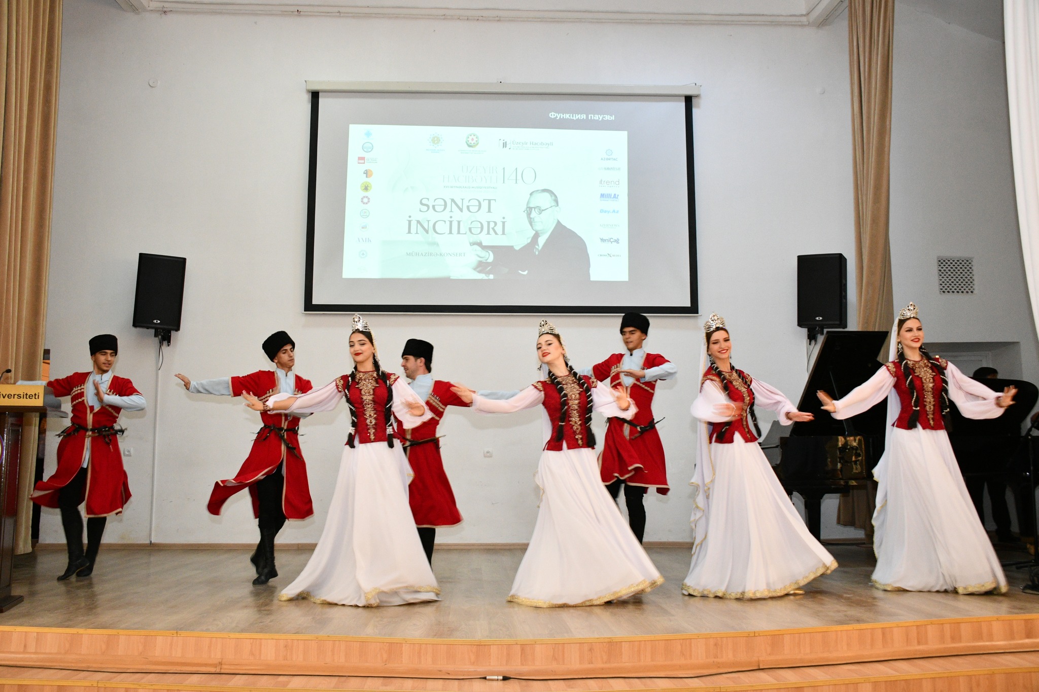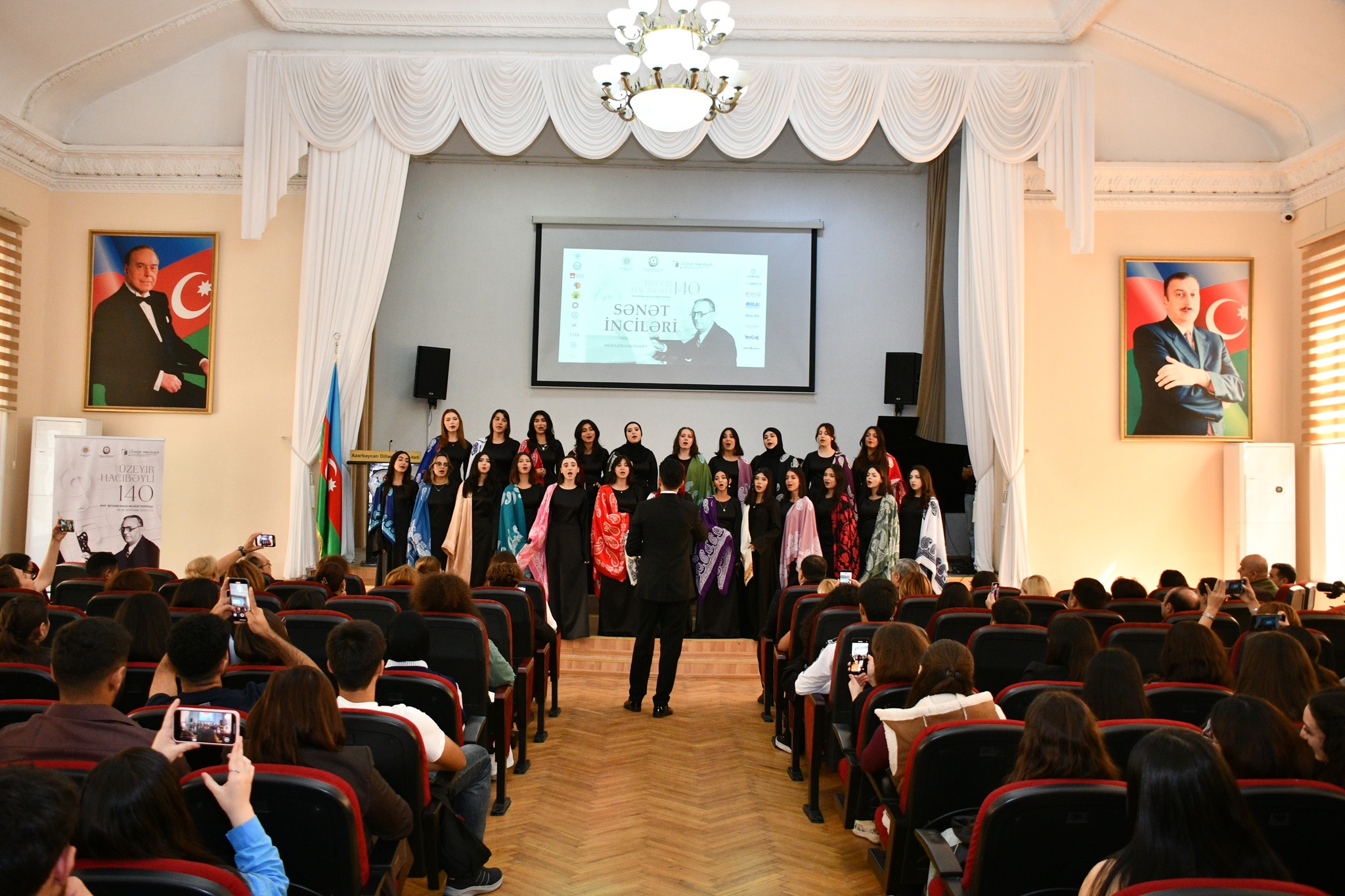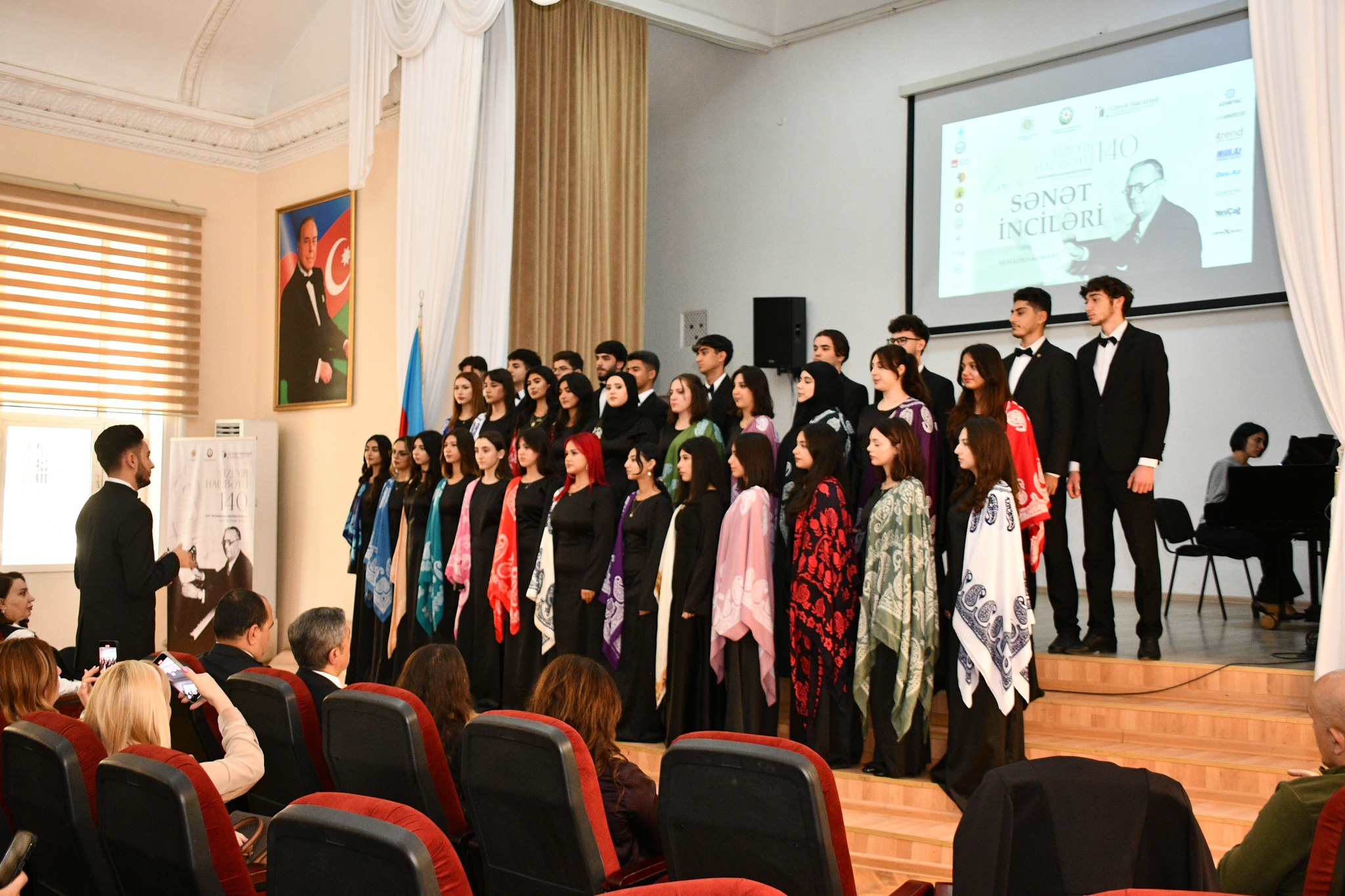 Затем выступили хор Западно-Каспийского университета (художественный руководитель Руфат Халилов), студенты Бакинской музыкальной академии имени У.Гаджибейли, Азербайджанской национальной консерватории, Азербайджанского государственного университета культуры и искусств и танцевальная группа Бакинской хореографической академии (художественный руководитель народный артист Юсиф Гасымов).