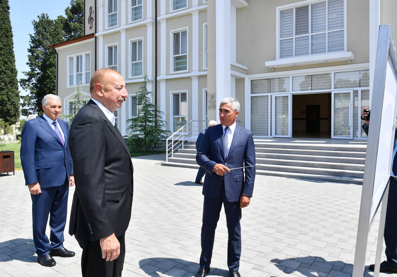 7 августа Президент Азербайджанской Республики Ильхам Алиев принял участие в открытии нового здания детской музыкальной школы села Серкар, построенного в Самухском районе в рамках проекта Фонда Гейдара Алиева «Поддержка образованию».