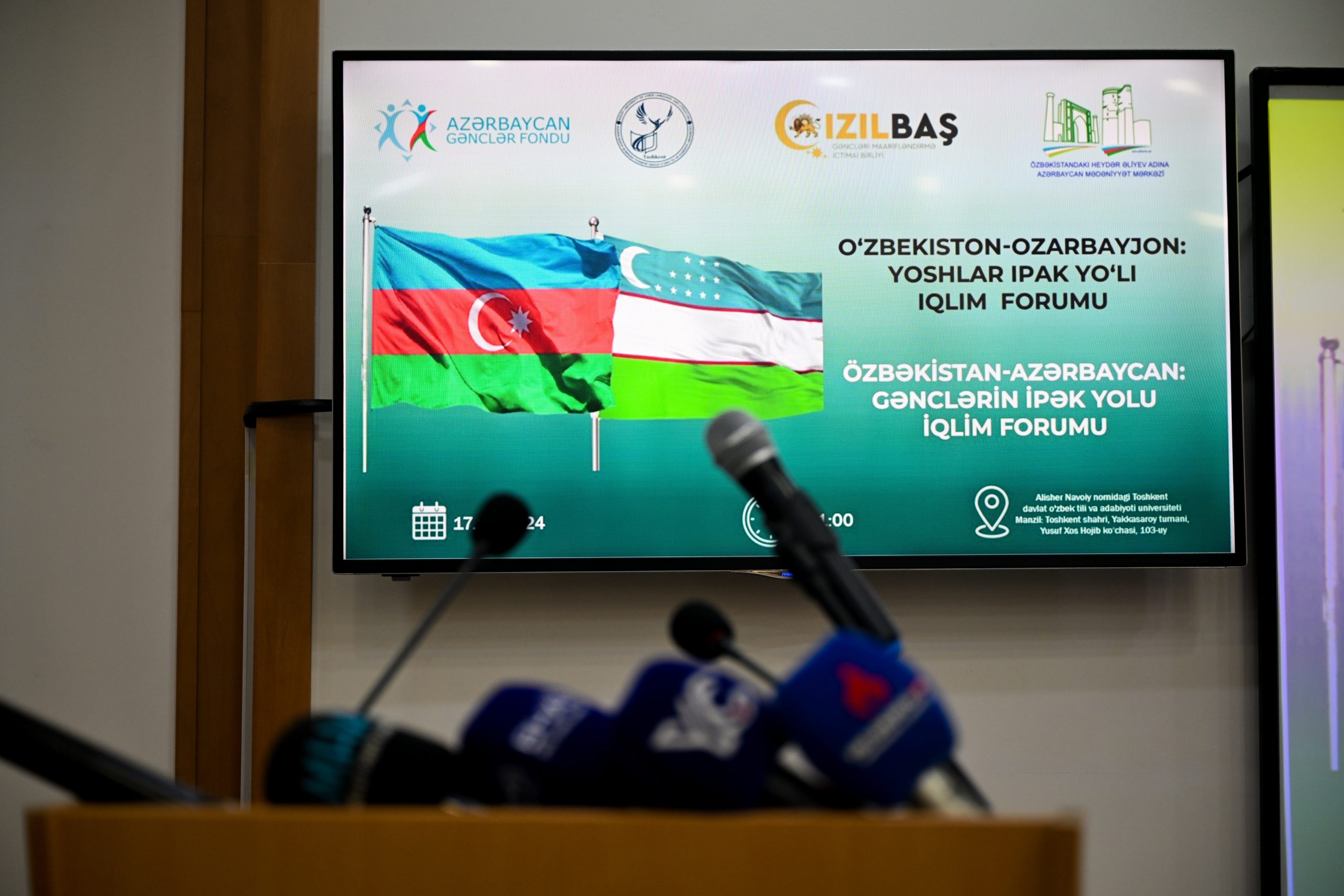 В Ташкенте при поддержке Молодежного фонда Азербайджана, и при совместной организации Общественного объединения по просвещению молодежи «Qızılbaş» и Азербайджанского культурного центра имени Гейдара Алиева в Узбекистане состоялся экологический форум под названием «Узбекистан-Азербайджан: Молодежный климатический форум Шелкового пути».