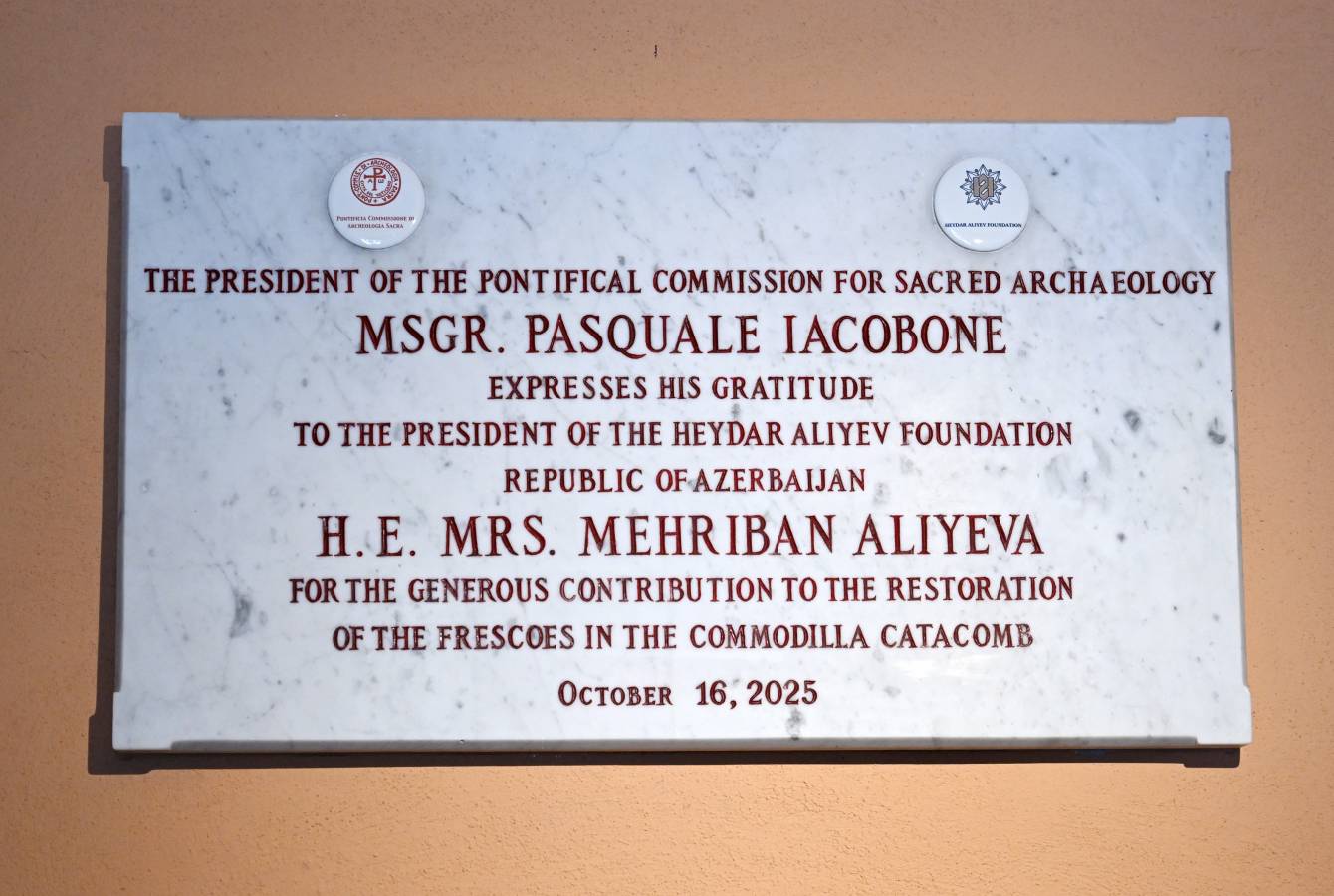 Президент Папской комиссии по священной археологии Ватикана монсеньор Паскуале Якобоне сказал, что на протяжении многих лет Первый вице-президент Мехрибан Алиева тесно и плодотворно сотрудничает с возглавляемой им комиссией. Он выразил глубокую признательность Первому вице-президенту Мехрибан Алиевой за участие в открытии катакомб Коммодиллы.