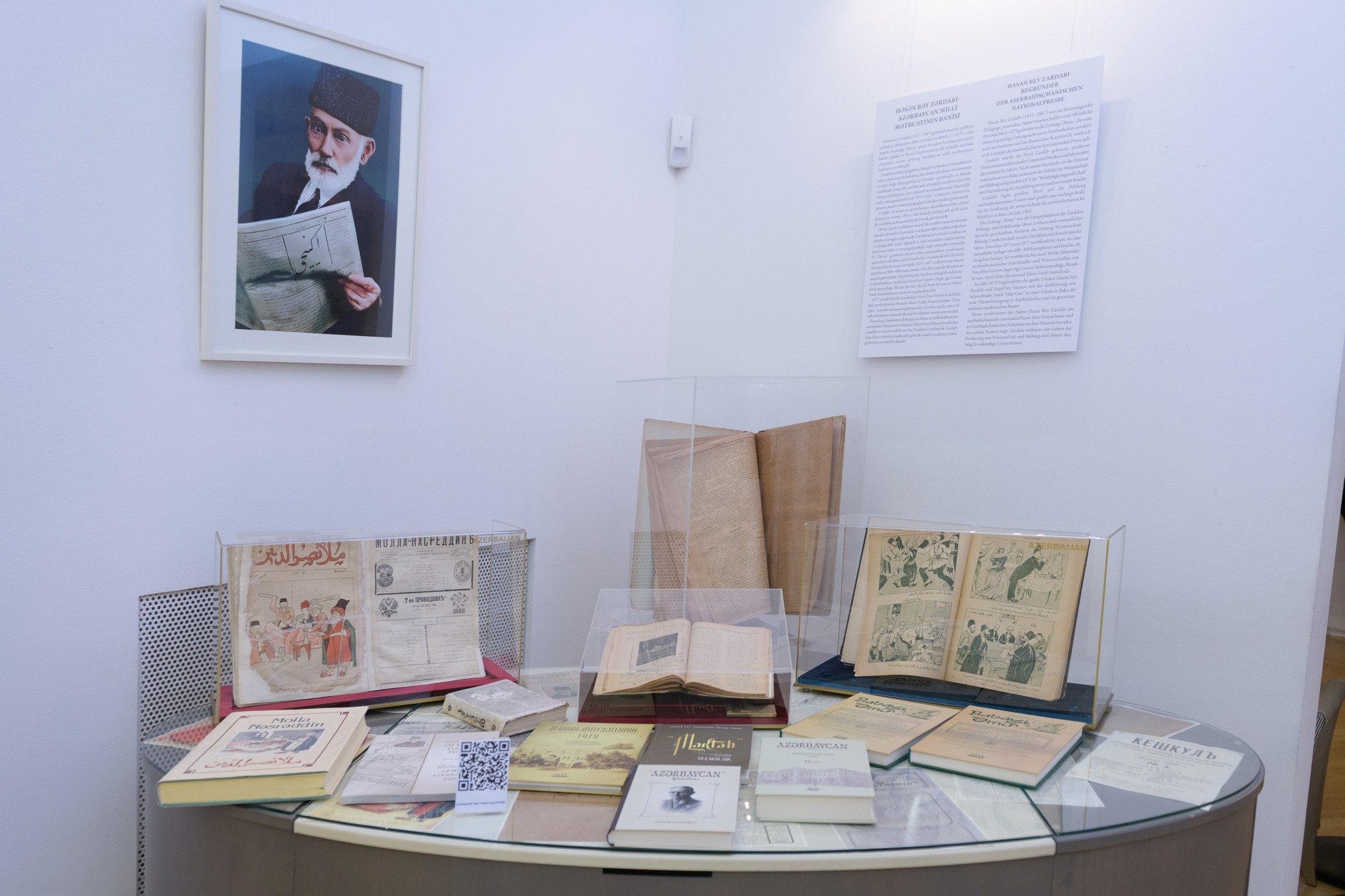 Выставка посвящена таким личностям, как Мирза Гадим Иревани, Узеир Гаджибейли, Гасан бек Зардаби и Мирза Фатали Ахундзаде. Опираясь на богатые традиции, они привнесли в национальную культуру просветительские идеи и новаторские взгляды, превратив театр, живопись, печать и музыку в средства общественного прогресса.