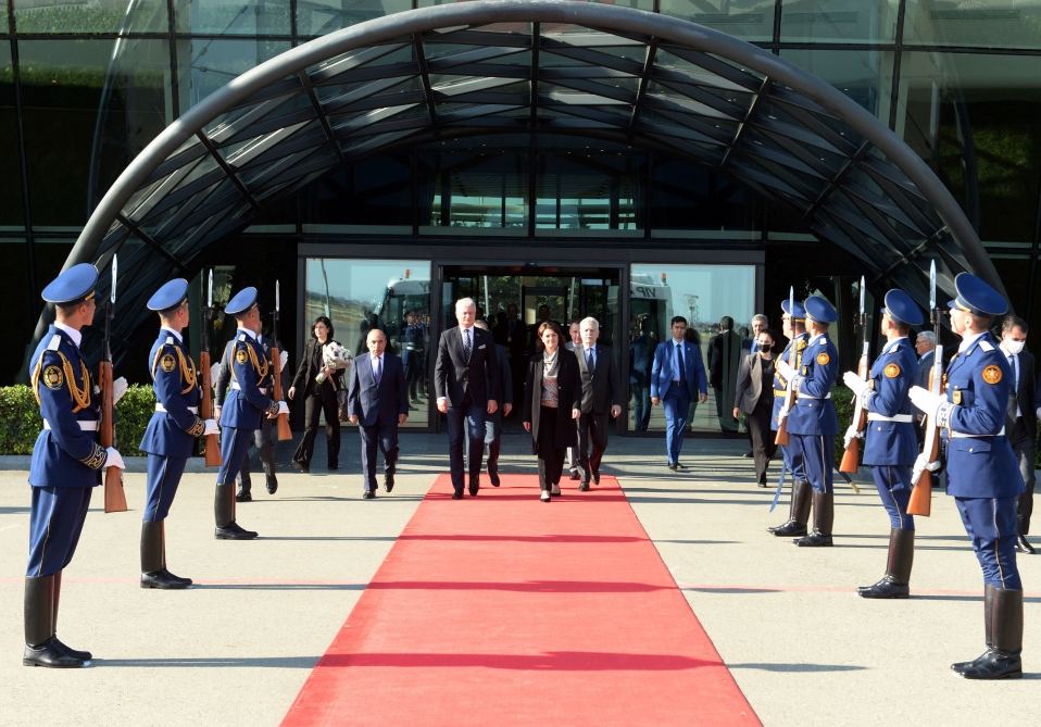Как передает Trend, в честь высокого гостя в Международном аэропорту Гейдар Алиев, где развевались национальные флаги обеих стран, был выстроен почетный караул.
