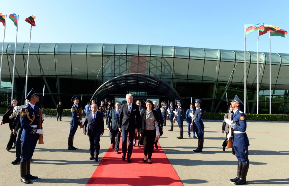 Президента Литвы Гитанаса Науседа и его супругу Диану Науседа провожали в аэропорту первый заместитель премьер-министра Азербайджанской Республики Ягуб Эйюбов, заместитель министра иностранных дел Халаф Халафов и другие официальные лица.